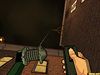 XIIIでは,ゲーム序盤からこのフックショットが与えられ,高いところへ登ったり,あるいは逆に高いところから飛び降りたりする場合に活用できる。フックショットを吊り下げた状態で移動キーを押すことで振り子のようにスイングでき,タイミングを見計らってかぎ爪を解き放てば大ジャンプも可能。このフックショットを活用して足場から足場へ渡り飛んでいく行動そのものを主体とした地形パズル的なミッションもあり,「フックショットを極めること=XIIIを極めること」といっても過言ではないかもしれない。