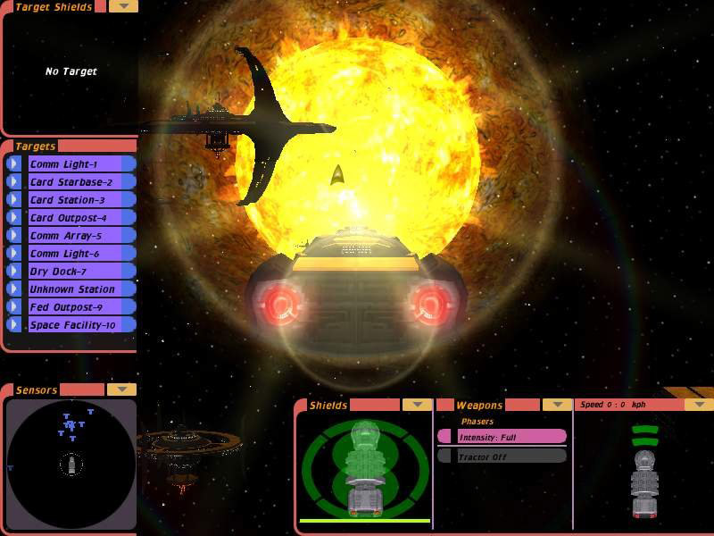 世界中に熱狂的なファンをもつ長寿SFドラマ「スタートレック」を題材にしたスペースフライトシミュレーション。プレイヤーは宇宙船の艦長となって,さまざまな状況に応じてクルーに指示を与えることで困難な任務を達成していく。TV版のスタッフがシナリオ作成に参加。最大8人のマルチプレイにも対応。 |