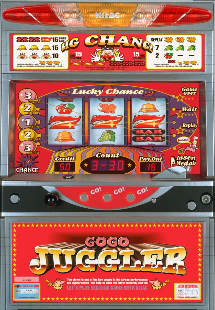 一世を風靡した名機「ジャグラー」の完全後継機「GOGOジャグラーSP」。ジャグラーからの変更点は,ワイドリールの採用,絵柄の内容など。リプレイハズシなどの練習をすれば,実機で獲得できるメダルも増えるかも!?