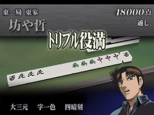 「週刊少年マガジン」で好評連載中の人気コミック「勝負師(ギャンブラー)伝説 哲也」のテレビアニメ版をもとに,ゲーム化された本作。テレビアニメのストーリーを完全再現している。プレイヤーは哲也になりきり,「ツバメ返し」「左手芸」「元禄積み」など29種の玄人技を駆使して相手に挑むのだ。 |