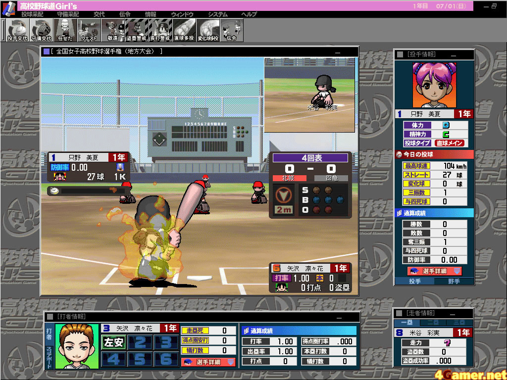女子高校野球をテーマにしたシミュレーションゲーム。女の子がメインということもあってか,なんと60種類以上のユニフォーム……ではなく服が用意されている。プレイヤーは野球部の監督としてチームを日本一に導くためガンバルわけだが,選手は可愛い乙女達。恋愛/ルックスなどさまざま悩みをもつ彼女らの相談など,野球以外にも忙しい!?