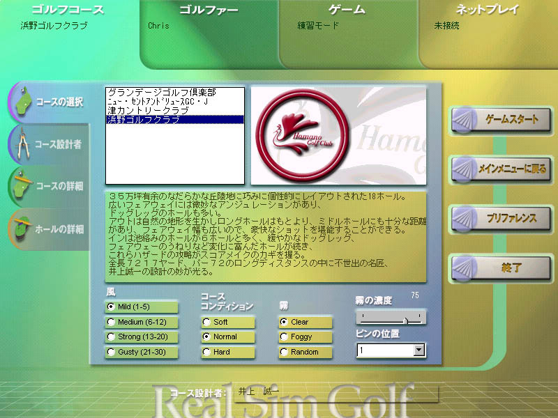 日本国内に実在するゴルフ場を再現したゴルフゲーム。関東地方から2コース"ニューセントアンドリュースゴルフクラブジャパン"(栃木県),"浜野ゴルフクラブ"(千葉県),近畿地方から2コース"グランデージゴルフ倶楽部"(奈良県),"津カントリー倶楽部"(三重県)を収録。 |