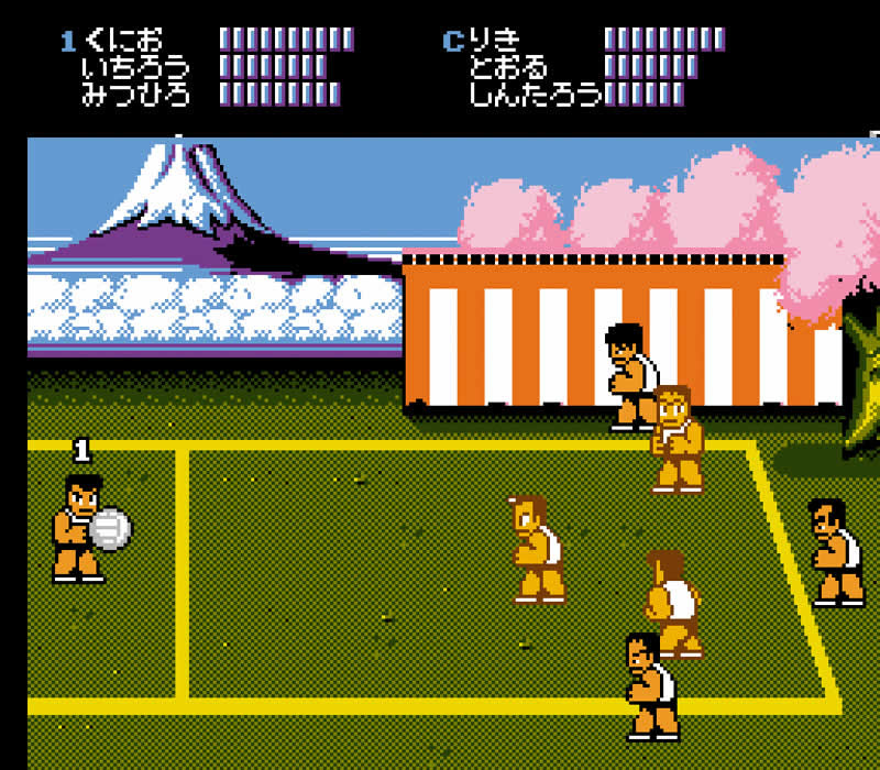 白い学ランで不良達に挑む姿がシブかった"熱血硬派くにおくん"が,なんとドッジボールに挑戦! という意外なコンセプトで話題となった「熱血高校ドッジボール部」。アーケード版から多くの機種に移植されたが,チームメイトを育成するモードを搭載したファミコン版がULTRAシリーズとして登場する。"くにお"や"りき"の必殺シュートを炸裂させろ! |