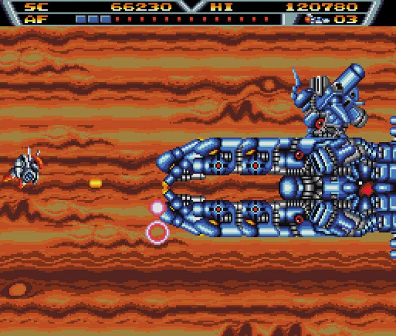 戦闘機"ルシフォン"を駆る少女スターナが,強大な宇宙海賊軍に挑む横スクロールシューティングゲーム。ルシフォンは戦闘機からロボットに変形でき,変形することでショットや必殺技の能力が変わる。 |