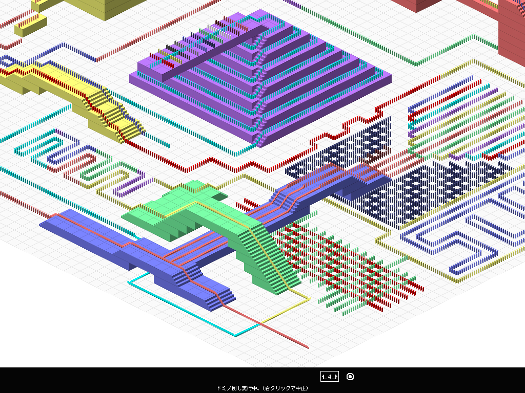 Windows上で"ドミノ倒し"を楽しむ作品。ドミノの札を並べて自分だけのドミノ倒しを作成していく。シンプルなゲームだが,ドミノをうまく倒していけるようになると,ドミノ倒しのセットの作り込みにはまりだしてしまうかも。