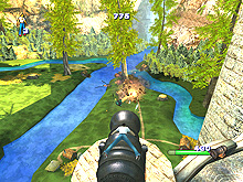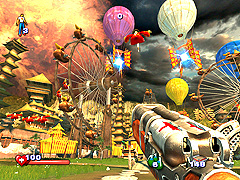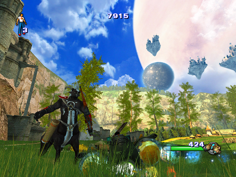 クリーチャーやオブジェクトなどの質感も素晴らしいのだが,それ以上に背景の美しさが素晴らしい。大自然だったりメルヘンだったりSFだったりと,こんな脳天気シューティングに,なぜこんな美しいフィールドが必要なのか不思議なほどだ。血と肉塊で汚すには多少気が引けるが,まぁ仕方がない。