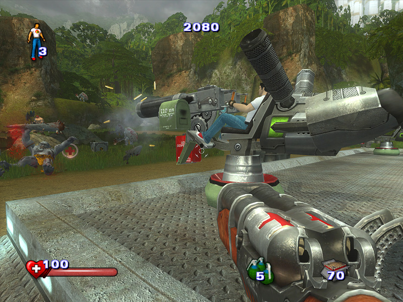 以前よりアナウンスされていた,Serious Sam 2の新要素「乗り物」。今さらFPSで乗り物が新要素といわれても別に驚きはしないが,まぁ本作の場合ちょっと面白い乗り物が多いので許したい。