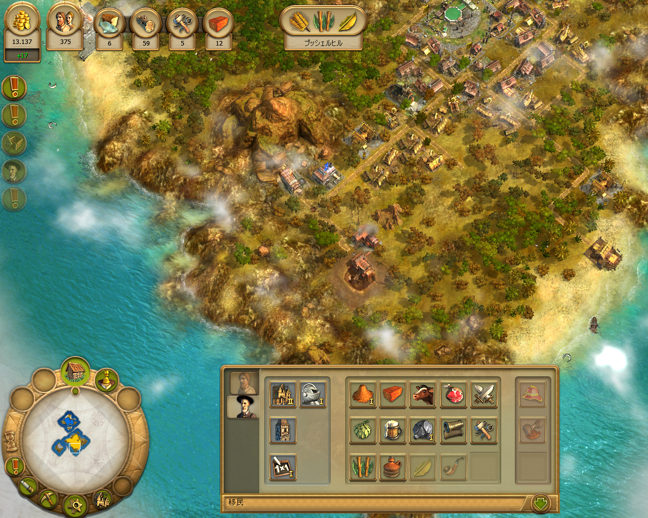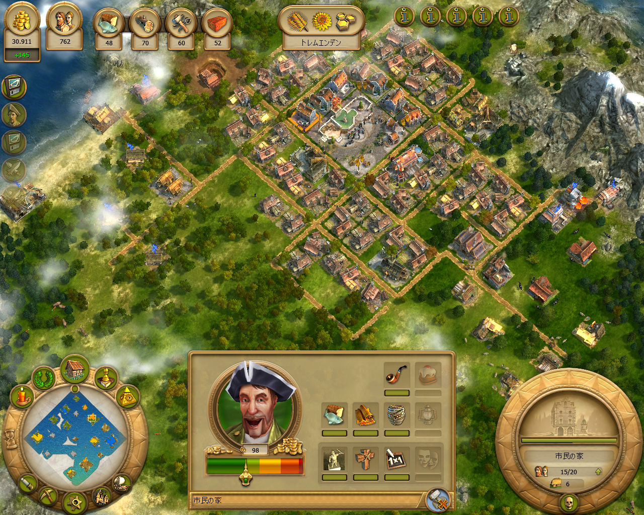 | 美麗な3Dグラフィックスと分かりやすいユーザーインタフェース,そして丁寧なチュートリアルのおかげで,多くのプレイヤーも「最高に満足した開拓者」のように「ガッハッハ」となることだろう |