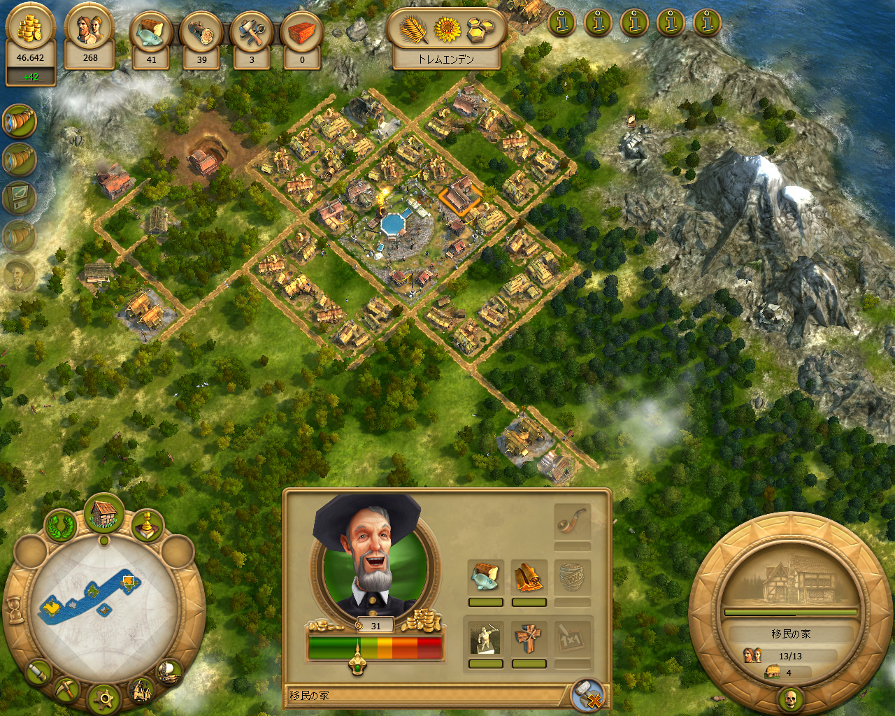 と,サラッと説明しているが,これが誰でも簡単に実行できるようならゲームとしての面白さはまったく失われてしまうわけで,実際には開拓資金の残高,人口と税率,支配下にある土地で産出できる資源,交易のバランスを考えながらプレイする必要がある。
