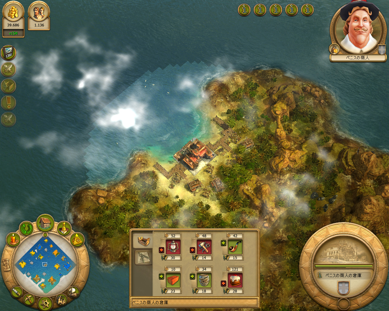 | 自分で生産できない物資は,ベニスの商人から購入すると良い。また自分の領土で生産した余剰物資は,売りつけてしまえば資金不足も解消されることだろう |