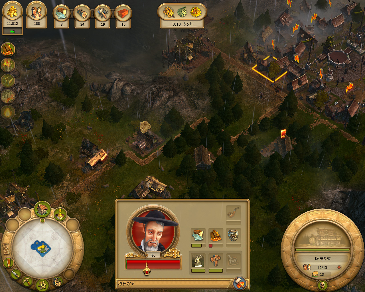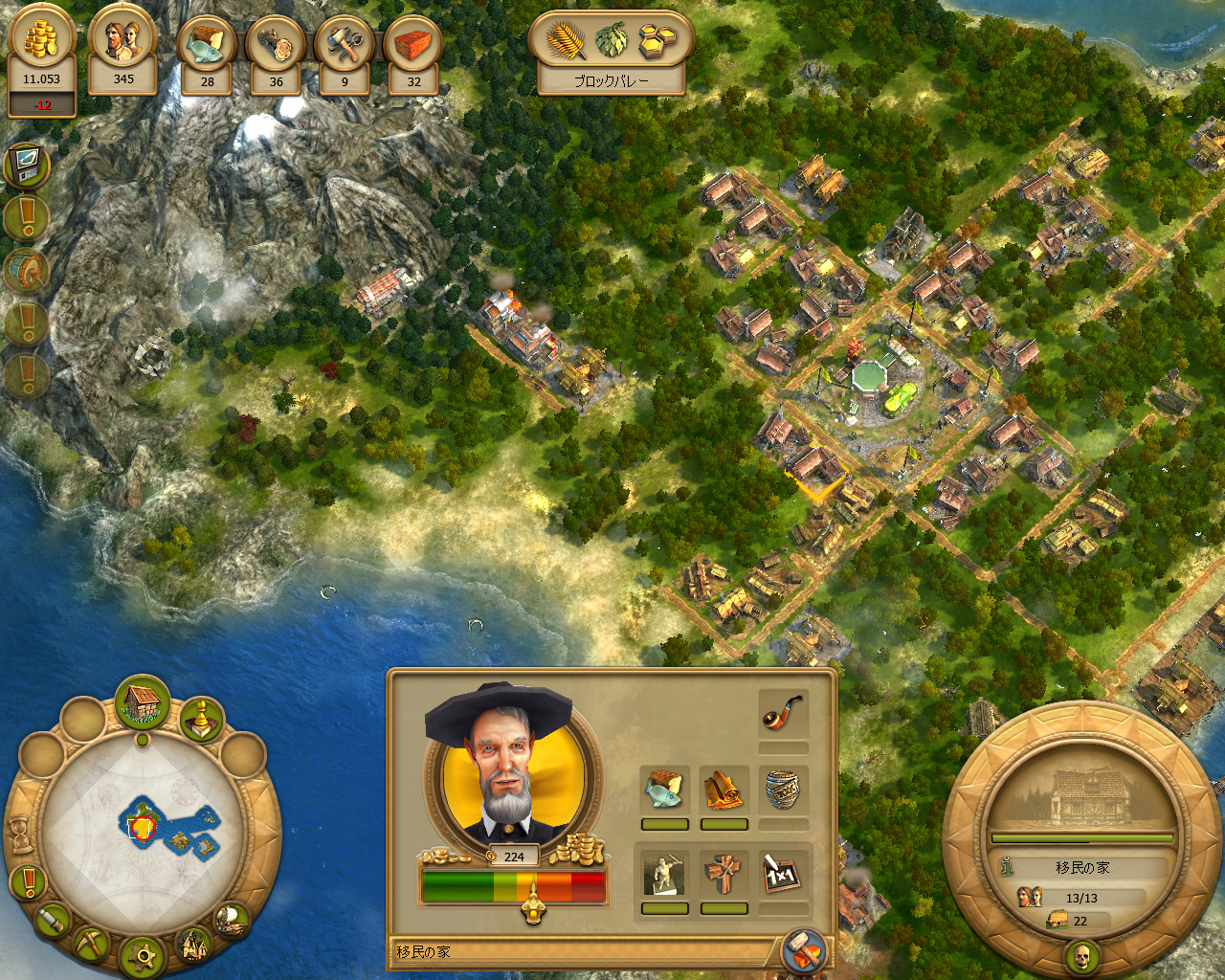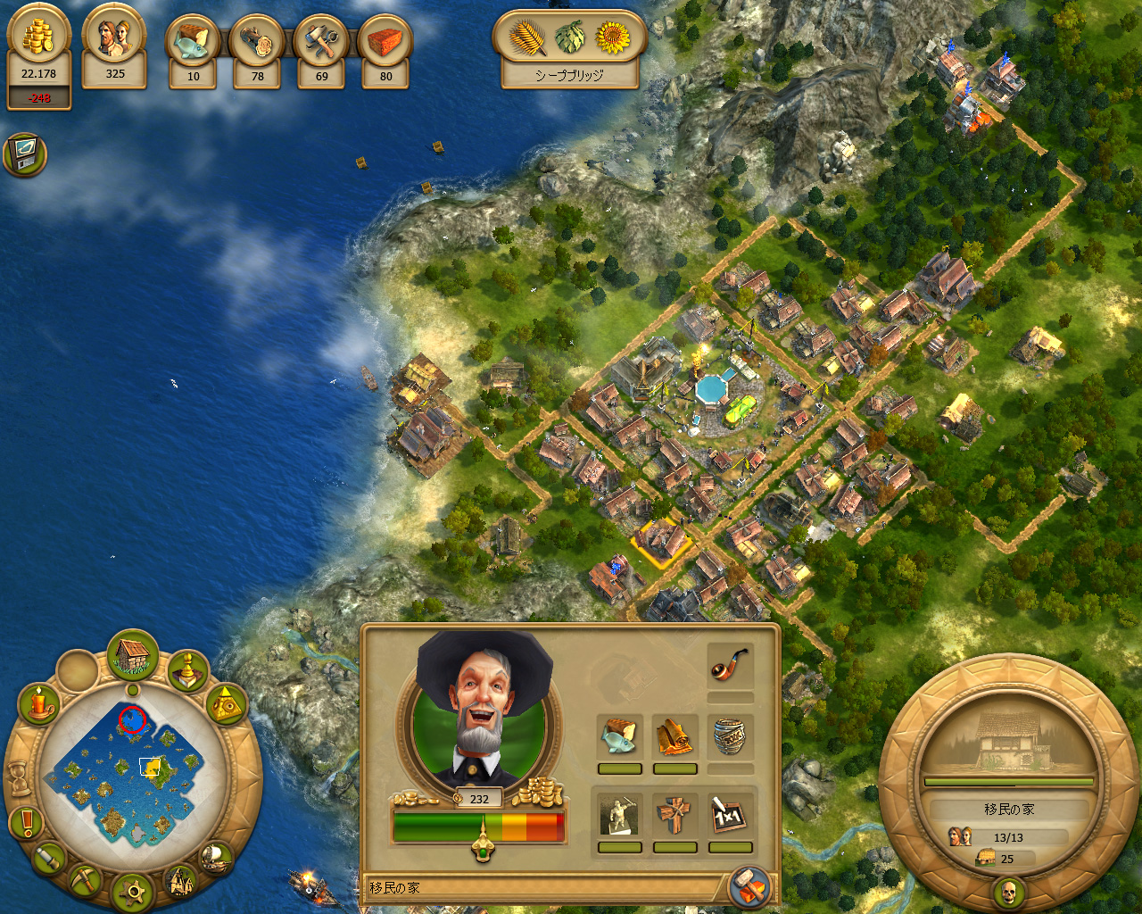 そこで重要になるのが,物資の生産を開始しても,十分な量および確実な供給ルートが確立するまでは,あえて住民への供給を見送る手段だ。このテクニックは,必要物資確保の難度が上がる「市民」以上の段階で,非常に有効となる。例えば生産物資である灯油やチョコレートを供給させなければ,いつまで経っても「市民」は「商人」にアップグレードしない。しばらく「商人」にはせず,十分な物資供給が見込めるのを待つのは重要テクニックの一つなのだ。