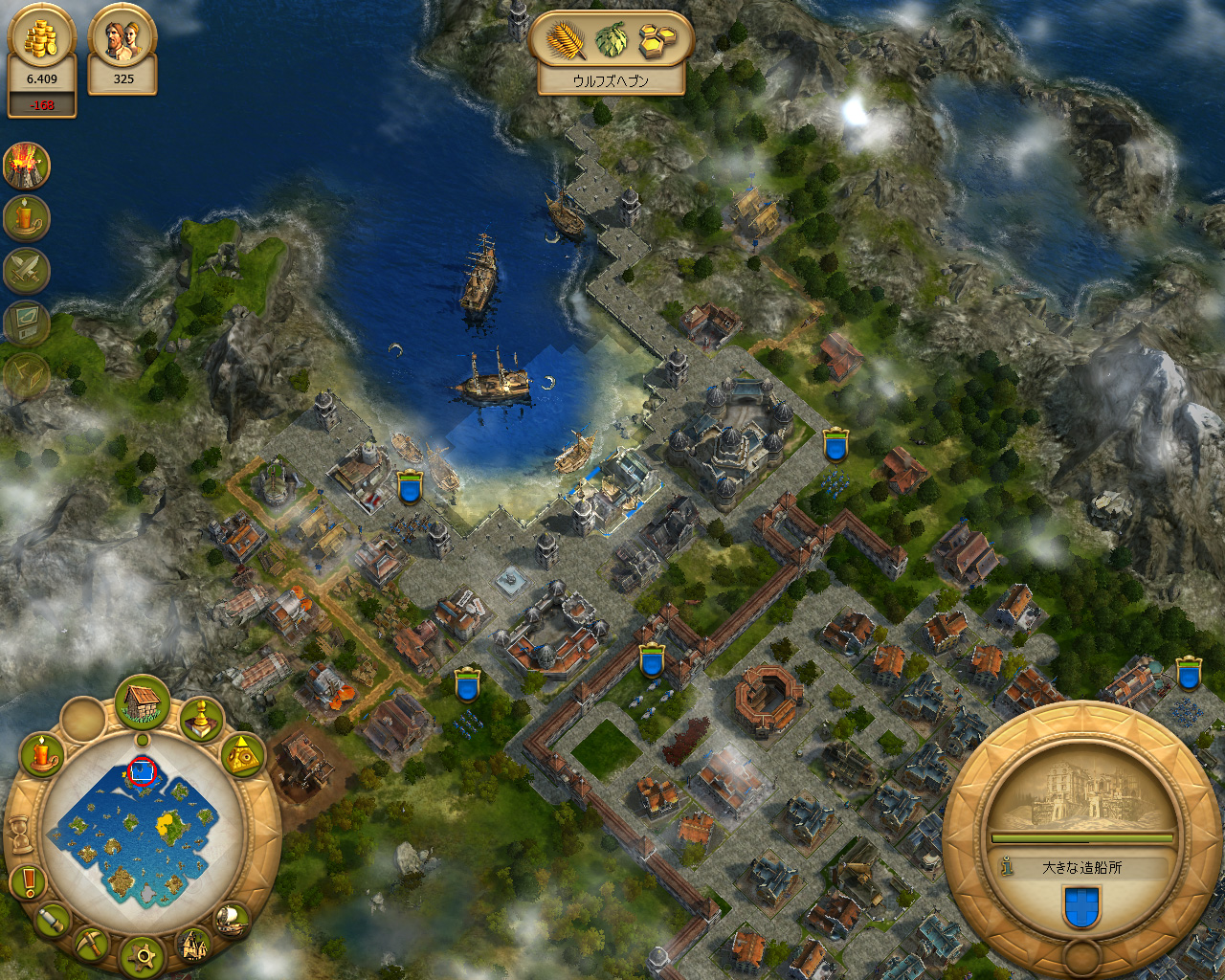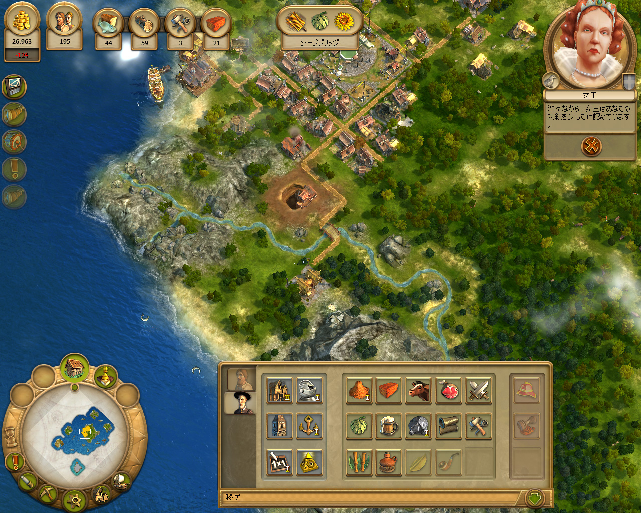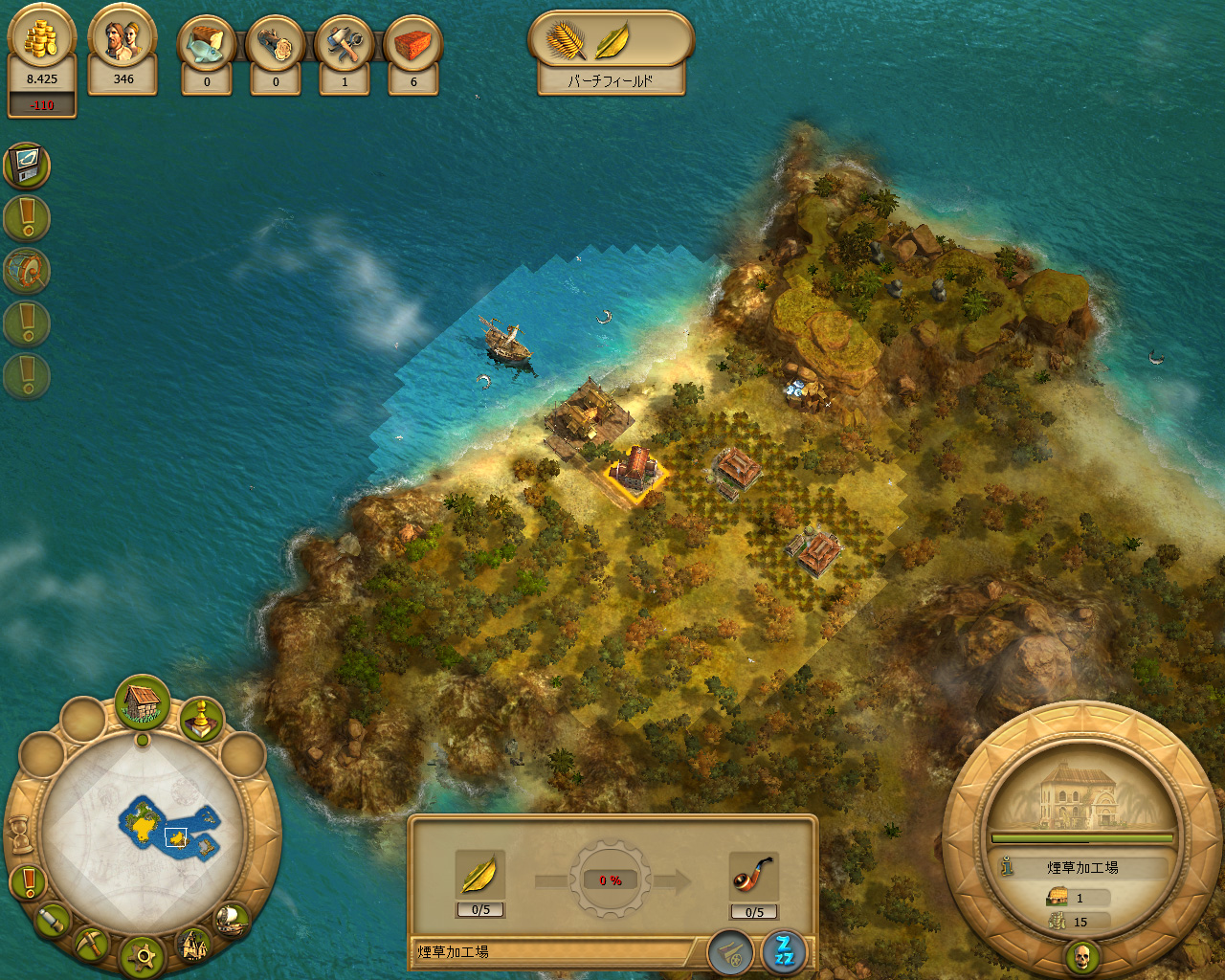 そこで重要になるのが,物資の生産を開始しても,十分な量および確実な供給ルートが確立するまでは,あえて住民への供給を見送る手段だ。このテクニックは,必要物資確保の難度が上がる「市民」以上の段階で,非常に有効となる。例えば生産物資である灯油やチョコレートを供給させなければ,いつまで経っても「市民」は「商人」にアップグレードしない。しばらく「商人」にはせず,十分な物資供給が見込めるのを待つのは重要テクニックの一つなのだ。
