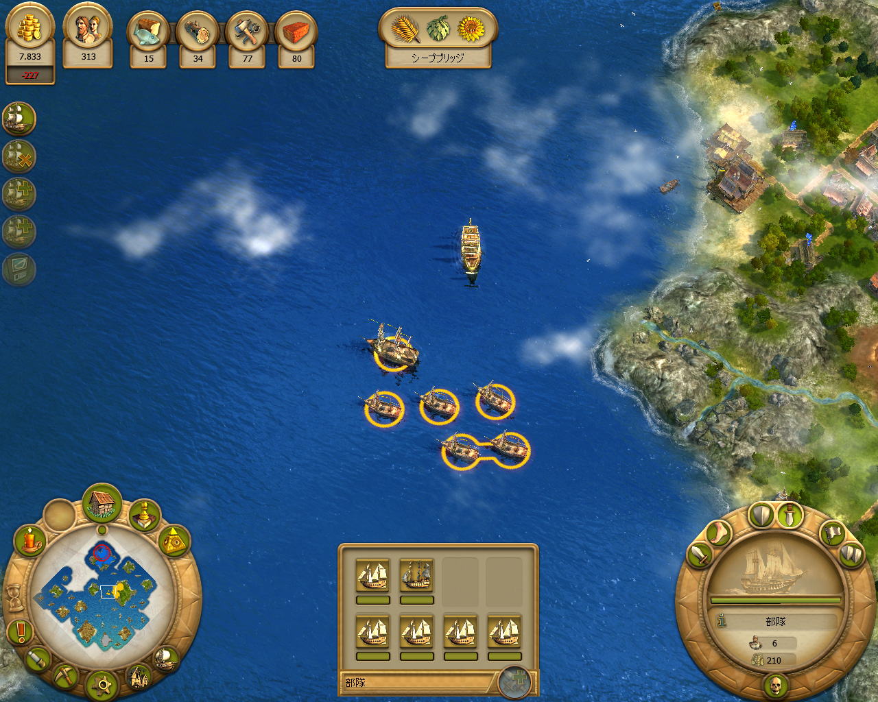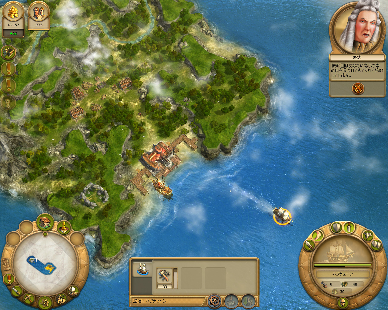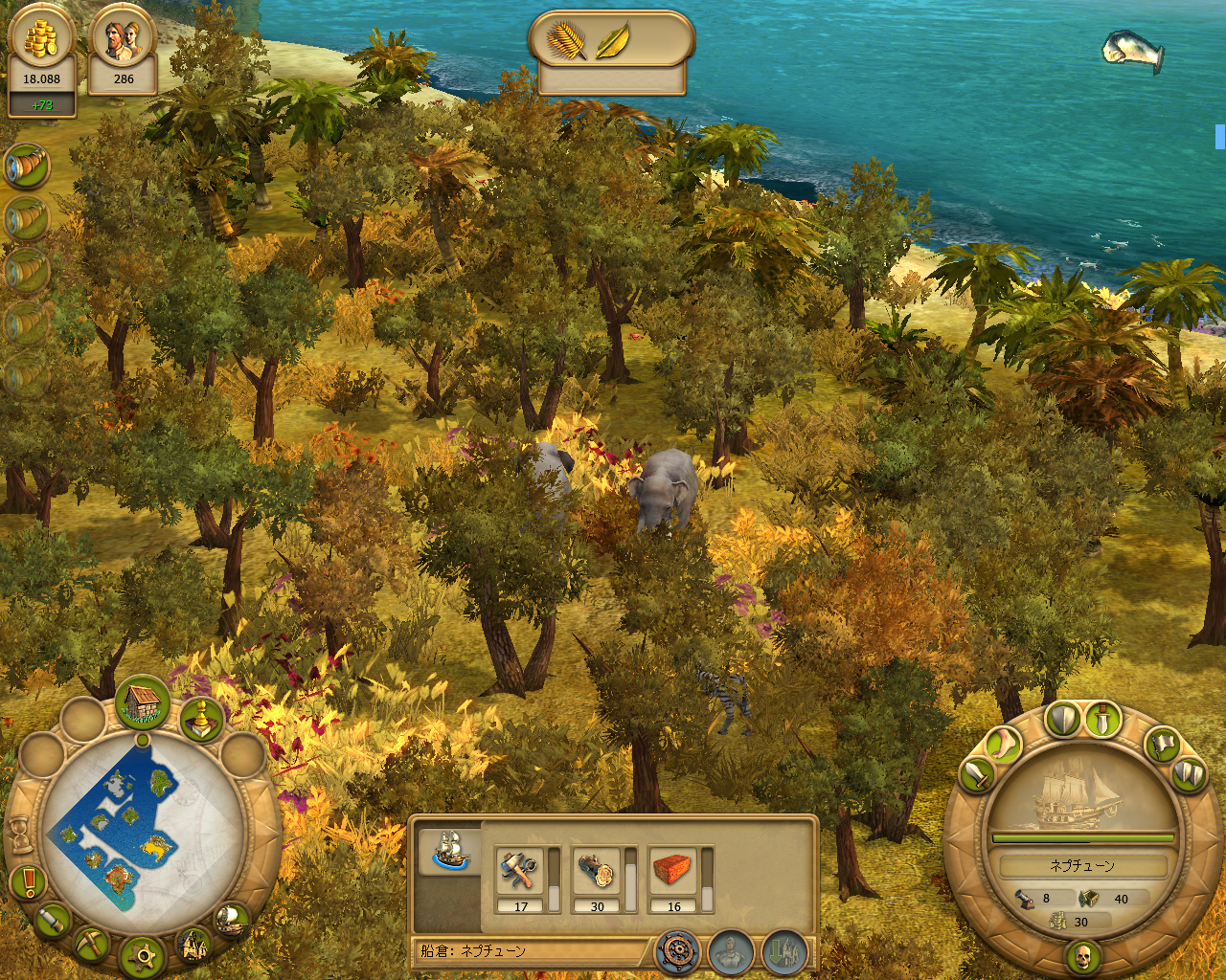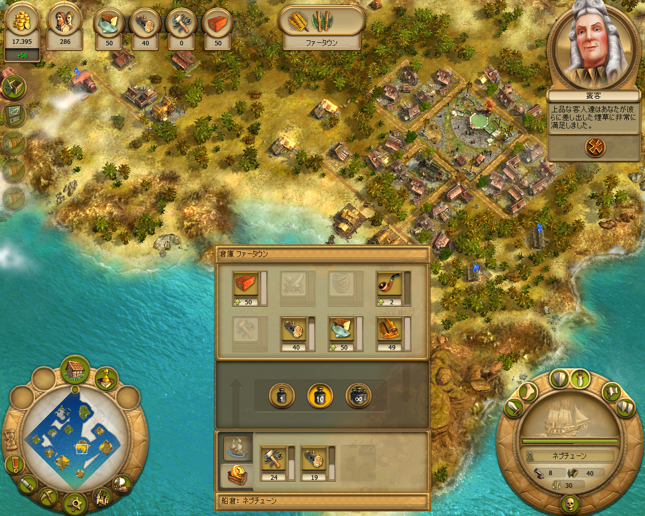 また,住民が求める「物資」を次々に供給していけば,彼らが順次アップグレードしていくのは前回解説したとおり。ここで無計画に住民をアップグレードすると,必要な物資の種類と消費量が増加する。しかし新たな植民地の開拓や交易船の生産,交易ルートの確立などによる,物資の供給経路の確保および拡大が,必ずしもうまくいくとは限らない(このバランスが見事に難しいのが創世紀シリーズの特徴)。物資不足が発生するとデモや暴動が発生,さらには人口減少につながってしまう。