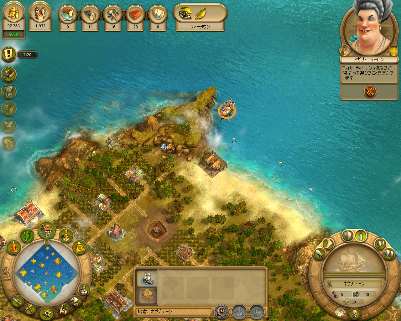 やはり1701のプレイの本懐は「継続プレイ」,いわゆるフリープレイにこそある。大小さまざまな島(大陸)が存在する広大な海洋マップ上で,莫大な利益を生む流通の構築を目指すもよし,陸地の完全制圧を目指すもよし,本国からの独立を目指すもよしと,プレイヤーの好きに遊べるのだ。これまでに学んだノウハウがすべて必要となる,それが継続プレイである。