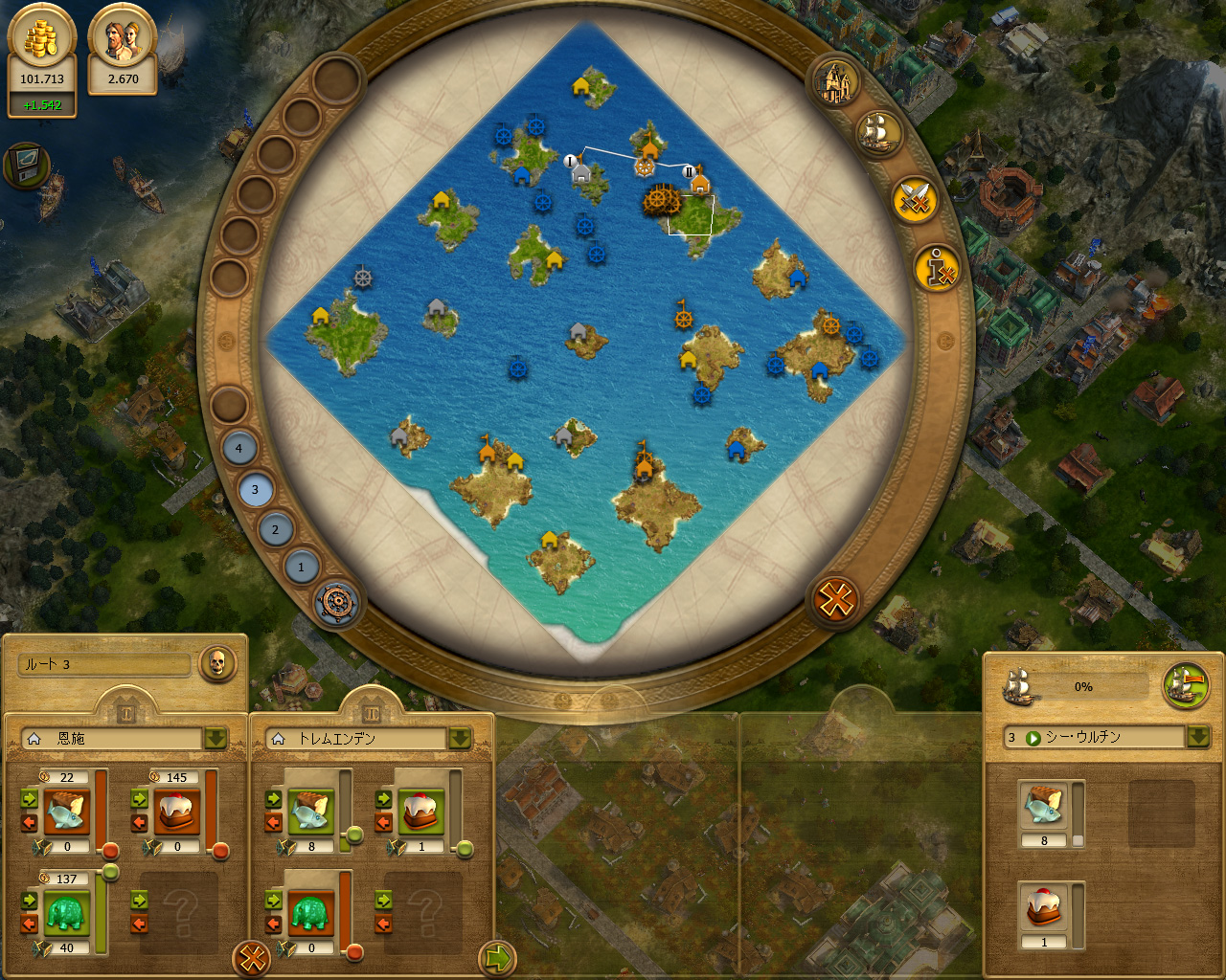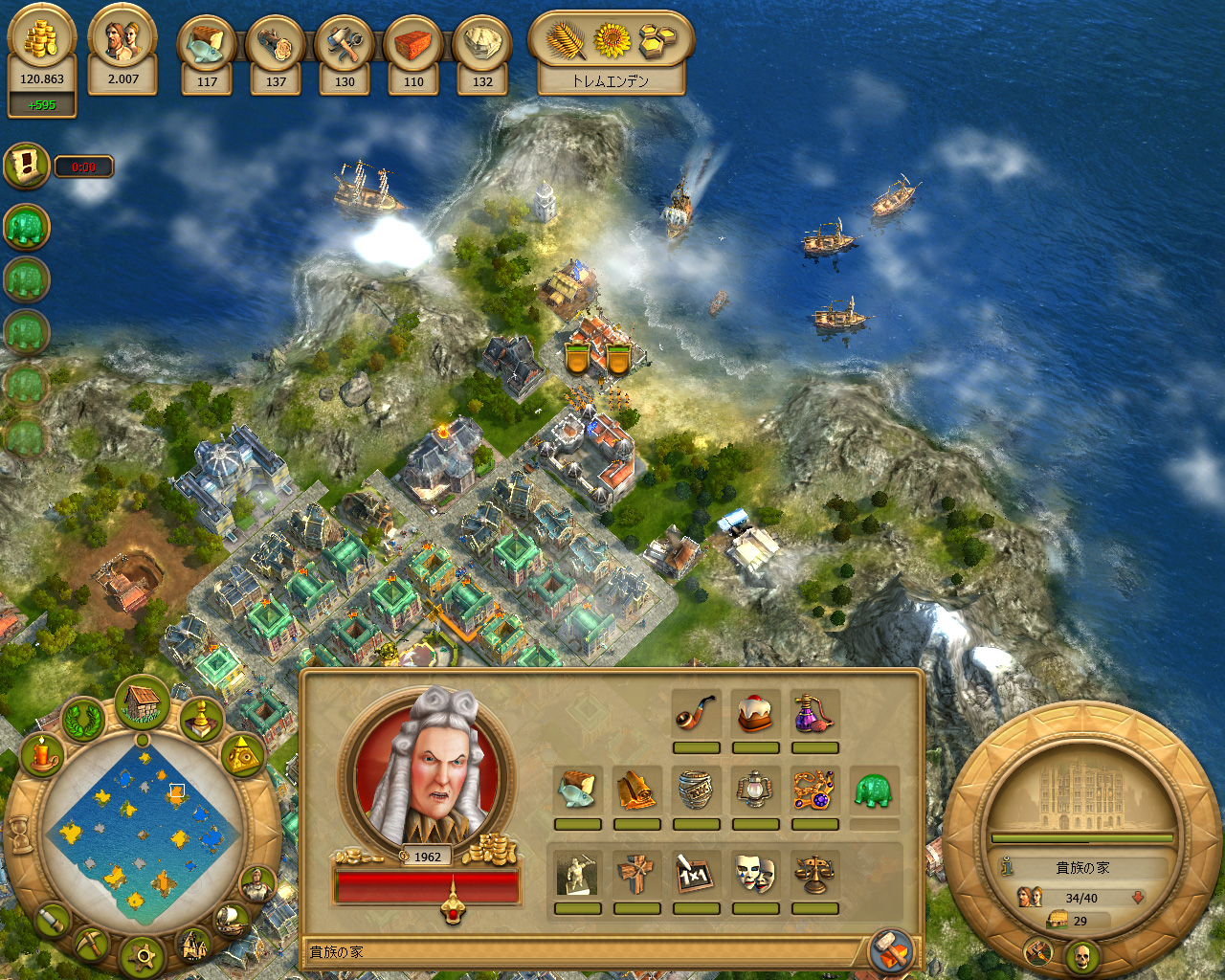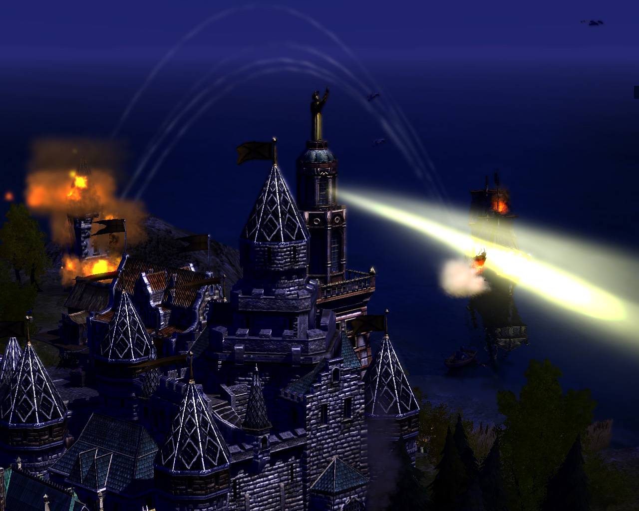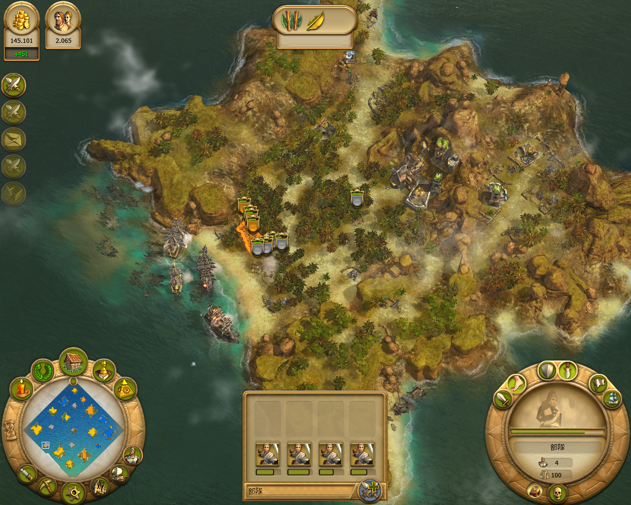 また,しばしばプレイヤーの交易船などを攻撃してくる厄介な海賊だが,こちらも根絶やしにするのは相当に困難だ。海賊の島で周囲の防護を固める塔なら戦艦で攻撃可能だが,中心部の「海賊の砦」は,兵を上陸させて攻撃するしかない。さらに砦からは,倒しても倒しててもひっきりなしに敵兵が現れるため,攻め落とすためにはプレイヤー側も人海戦を覚悟しなければならない。