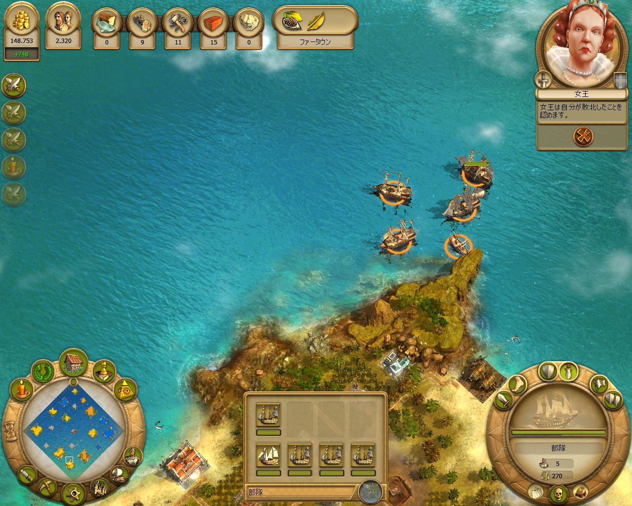 実際のところ,「女王からの独立」または「海賊を滅ぼす」といった勝利条件の達成を狙うのでなければ,無理に状況に逆らわず,ボチボチ付き合っていったほうがいい。ああ,なんか現代社会を上手に生き抜くための処世術みたいだ。