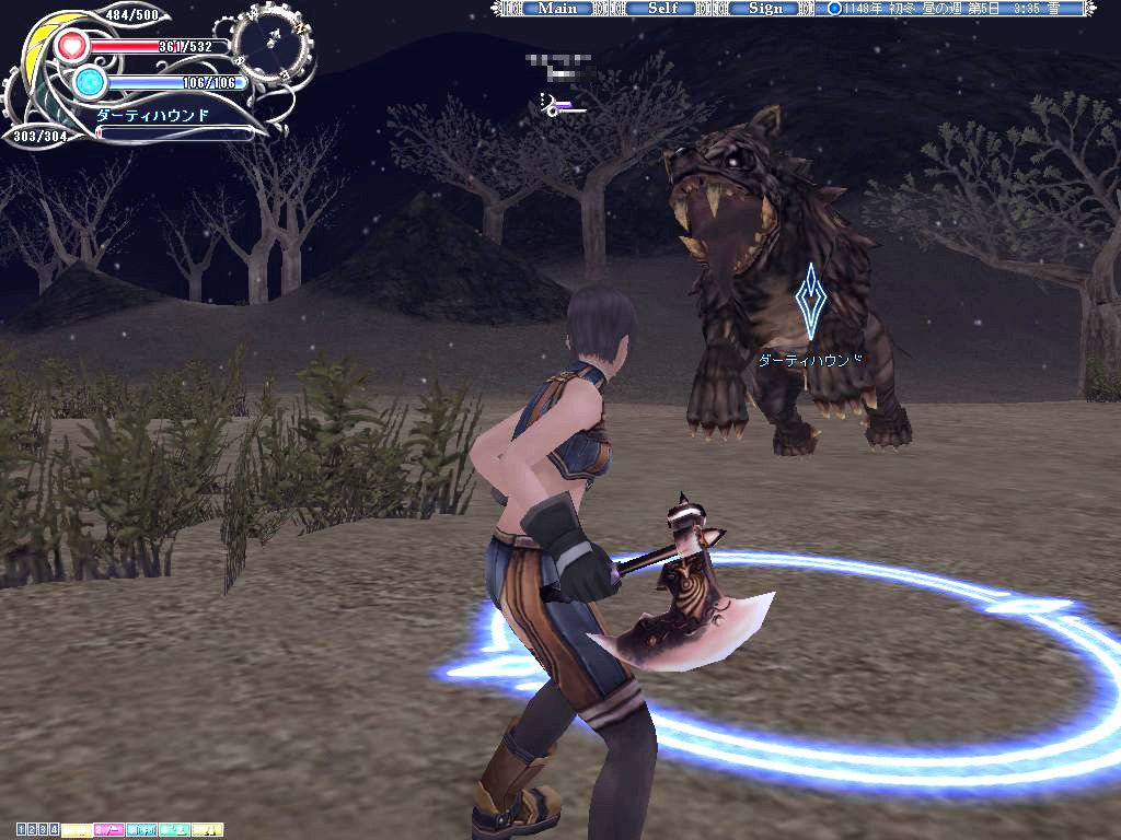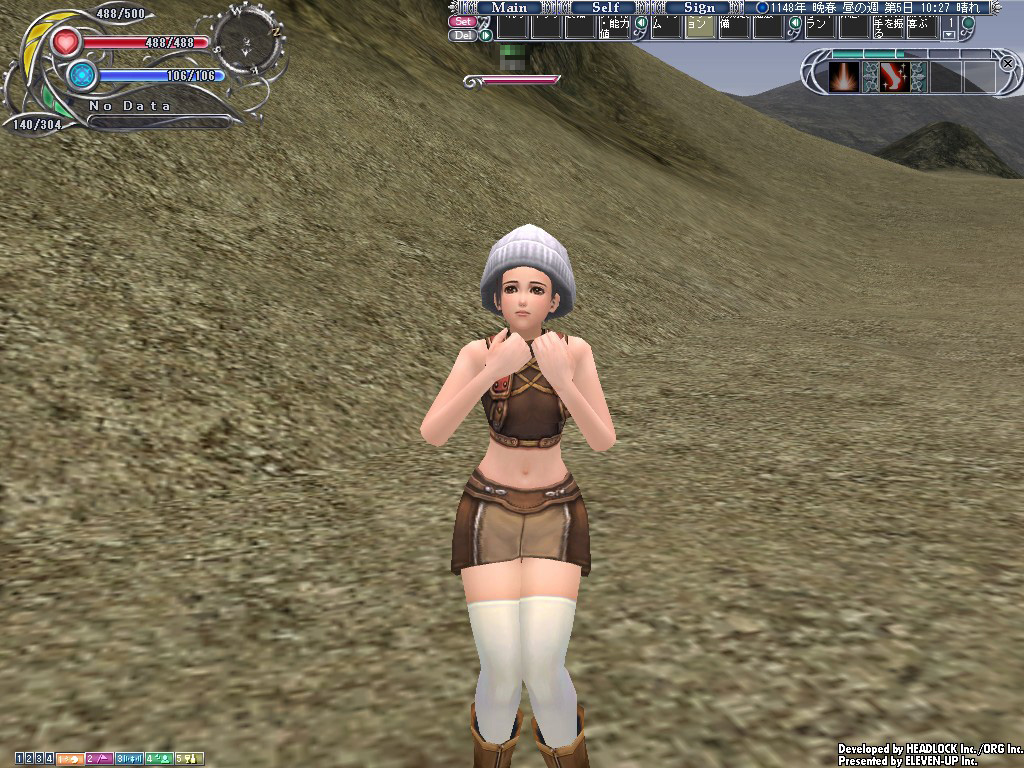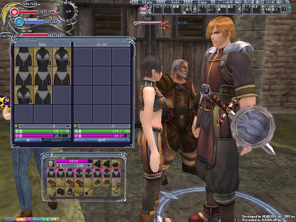 パンツまみれで動けなくなった女(いや,パンツ在庫は外から見えないんだけど)を,見るに見かねた彼の名はJ君(仮名)。Emmaと同じく初期装備のままの彼は,同じ初心者の苦しみを瞬時に理解したに違いない。