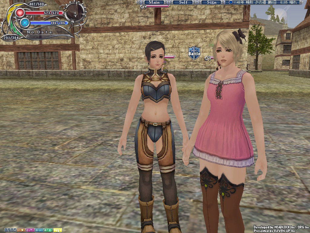 さて,ここから本編ともいうべき婿探しが始まる。しかし街に降り立って気がついたのは,Emmaの着ている初期装備の服が,ひどく野暮ったいこと。キャラメイキングでは練りに練ってチョイスしたつもりの服だが,街は初期装備とは別世界のお洒落さんで溢れ返っており,気分はもう田舎者のおのぼりさん。あんれやだよ,わだす!