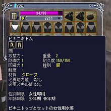 スキル値は足りていても,素材となる「なめしたアニマルハイド」や「絹糸」がないと作れないレシピばかり。そんな中,ビキニは最も少ない素材で,しかも効率良くスキル値が上げられるレシピだ |