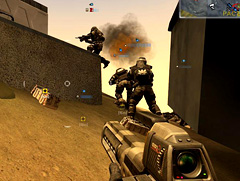 こちらもアサルトマップ。高低差の大きなマップで,高い位置にいる守備側のEU軍のほうが,狙撃にグレネードの投擲にと,何かと有利だ。PAC軍歩兵は弾雨をかいくぐりながら,坂を駆け上っていかなくてはならない。ただ,唯一登場する大型兵器のバトルウォーカーはPAC軍の拠点にしかリスポーンしないので,これを有効に使えば位置的な不利は挽回できるはずだ。とはいえ,EU軍本部への攻撃に多大な出血を強いられることは間違いない。