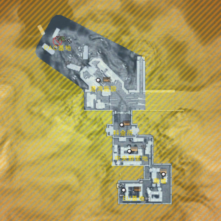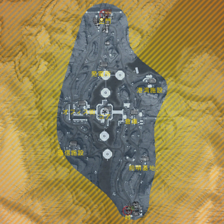 16人用,32人用共にアサルトマップ。初期配置では,攻撃側のPAC軍は占領不可能の拠点を一つ持ち,残りの拠点はすべてEU軍側が押さえている。バトルウォーカーは出てくるが,戦車や航空機が登場しないため,まずは最寄りのEU軍拠点である「港湾施設」をめぐる正面衝突が起きる。ここを押し切れないと,PAC軍はズルズルと負けてしまうだろう。EU軍のバトルウォーカーは最も北の拠点にリスポーンするので,前線に出るまで時間がかかる。そのため,PAC軍は序盤勝負だ。コマンダーによる砲撃のうまいヘタも戦況に大きく影響する。