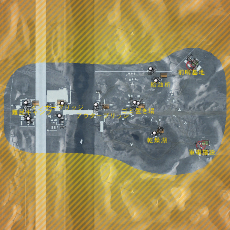 16人用マップだけはダブルアサルトで,お互いが占領可能な本拠地からスタートする。32人用,64人用はアサルトマップとなる。すべての種類の兵器が登場する(例によって,16人用では航空機は登場しないが)うえ,マップが広めで地形も比較的単純であるため,アサルトの場合,攻め側であるPAC軍がやや有利か。ただ,EU軍の最終拠点に到達するためには橋を渡る必要があり,「橋周辺を守り切ってEU軍の勝ち」となる場合も多くある。