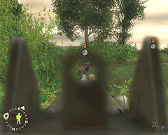 | 再び沼地から敵が現れて銃撃してくる。こちら側には完全に身を隠せる遮蔽物がないので,注意しよう |