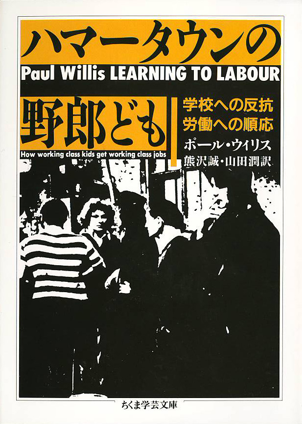 今回取り上げるのは,ポール・ウィリスの『ハマータウンの野郎ども 学校への反抗 労働への順応』である。1970年代に行われた,イギリスの工業地区にある新制中等学校(日本でいう中学校。11歳〜15歳)でのフィールドワークに基づいて,ブルーカラーの子弟が,同じくブルーカラーになっていくのはなぜか,また,そこに介在する文化がどういった役割を果たすかを解明した本だ。