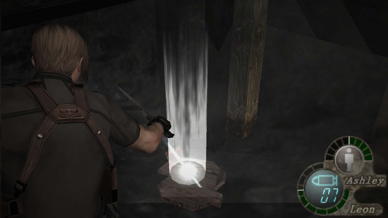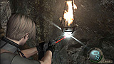 ゴンドラから下車して階段を降りると,東と西いずれかに進めるのだが,まずはお宝アイテム「ステインの宝石(黄)」を手に入れるため,西の洞窟のほうに向かおう。ただ,洞窟内にはダイナマイトを持ったガナードが複数いるため,これを排除する必要がある。対処方法は,これまで出現したときと同様なのだが,ここはアシュリーが一緒にいるので,ダイナマイトの爆風に巻き込まれると,ゲームオーバーとなってしまうこともある。少し離れたところに待機させ,レオン一人で探索に向かうようにしたい。