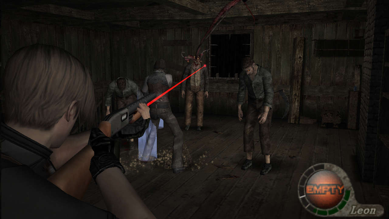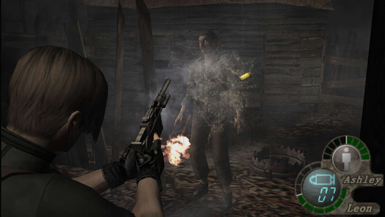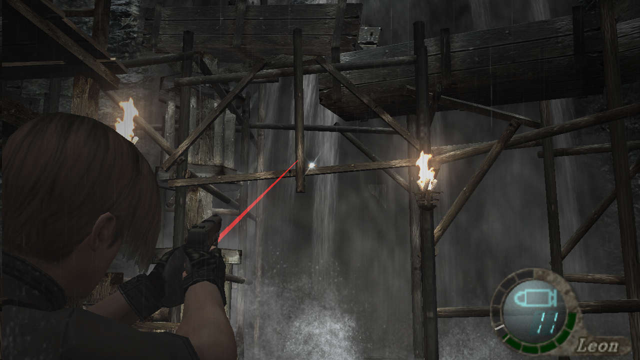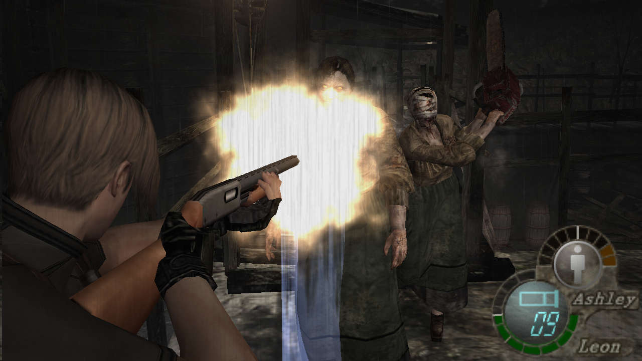 深い川の上にかかる吊り橋を渡るとムービーが再生され,空き家での籠城戦がスタートする。小屋の中へワラワラと立ち入ってくるガナード達を,NPCキャラのルイスと協力して排除するというものだ。