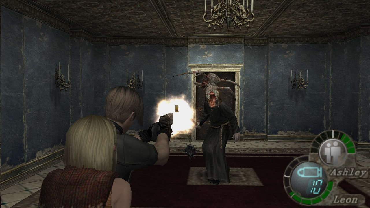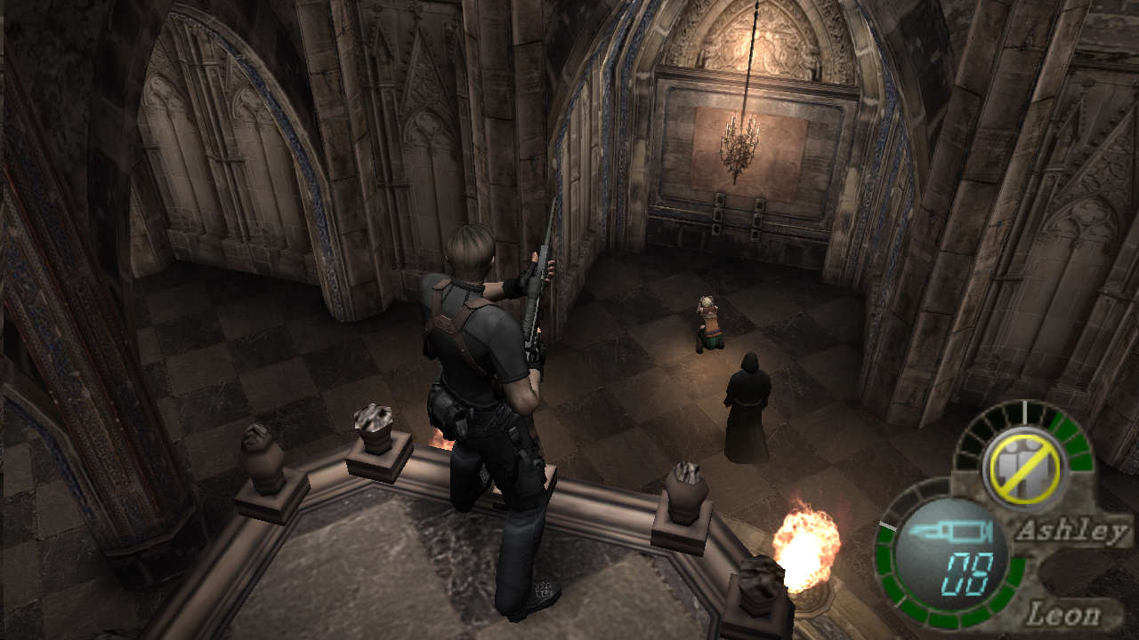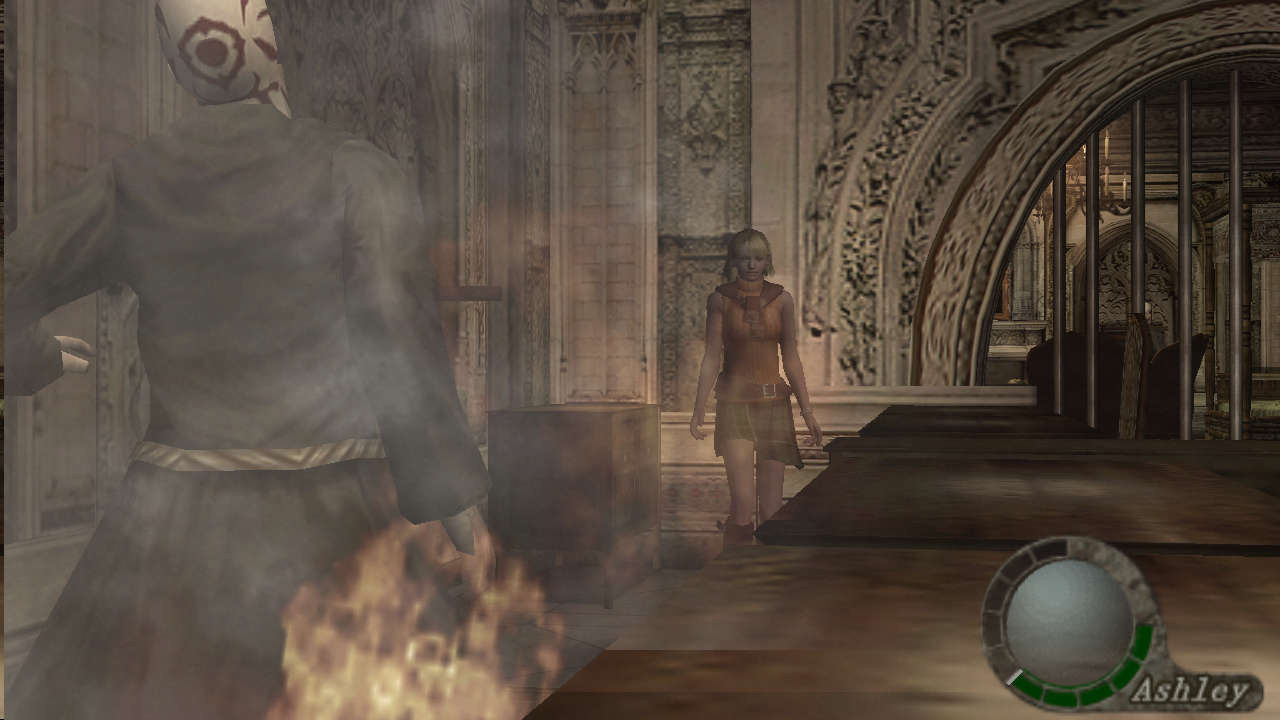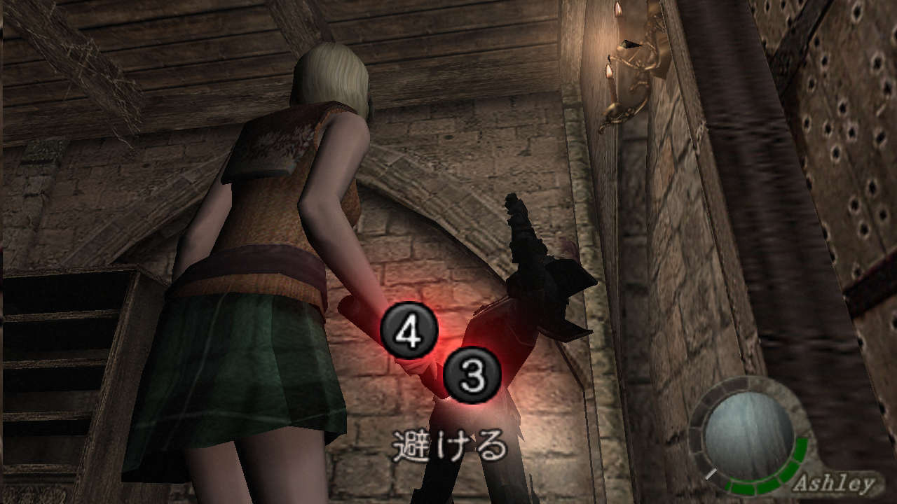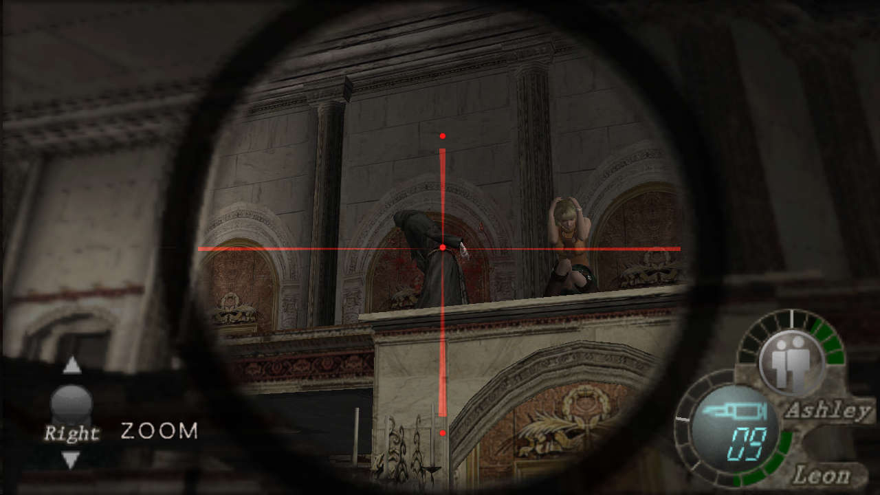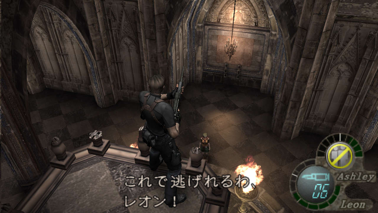 アシュリーを拘束する金具を三つすべて撃てばいいのだが,成功直後に階下に邪教徒が出現,アシュリーをさらおうとするので気が抜けない。左右2か所の扉から出現する邪教徒達をライフルで狙撃し,アシュリーがさらわれないように頑張ろう。中にはボウガンを持った邪教徒もいるので,そいつらを優先して倒すように。赤服の邪教徒を倒してアシュリーがカギを入手,扉から脱出するまで持ちこたえればこのミッションは成功だ。そのあと,プレイヤーの操作キャラがレオンからアシュリーに切り替わる。