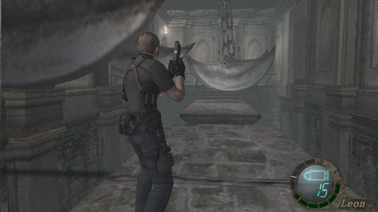 このChapterは,アシュリーの助けを求める声から始まる。フロアにあるアイテム類を回収したら,部屋の中央でアシュリーを拘束している金具を狙撃する。アシュリーを撃たないように,ライフルを使うのが無難だろう。