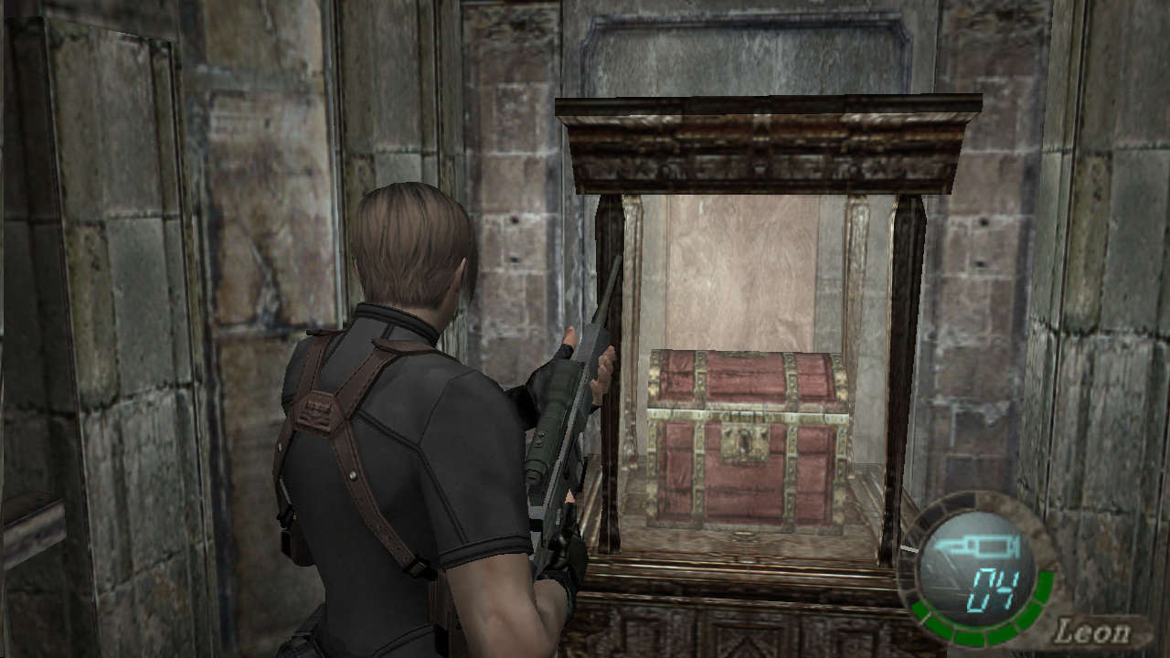 まずChapter3-3開始地点の部屋には,タイプライターでセーブできるほか,武器商人もいる。武器商人がいる部屋にはファイルがあるほか,タンスからお宝アイテム「真珠とルビーの鏡」が手に入る。ベッドの天蓋およびツボの中にあるスピネルと合わせて入手しておこう。