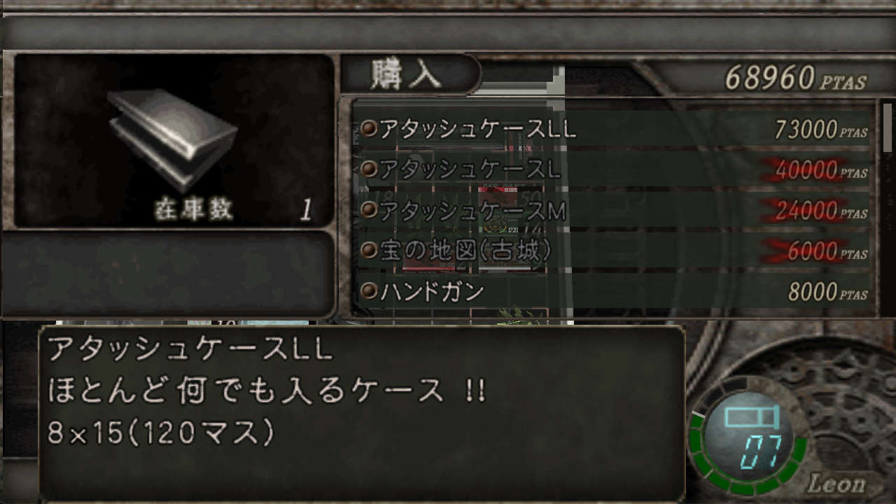 何はともあれアタッシュケースLは購入しておこう。アイテム所持スペースが大きいに越したことはない