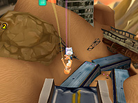 黙っていても滑り続けるため,ちょっと油断するとコースを外れて,とんでもない位置に引っかかったりする。さっさと「R」キーでコース復帰したほうがいい場合も |