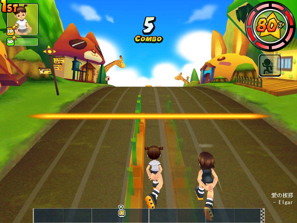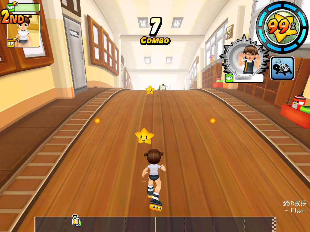 インラインスケートをはいた男女のキャラクターが,直線コースを爆走しながら障害物をよけたり,アイテムを獲得したりすることでメロディが流れるという,従来の音ゲーにはなかったスタイルが同タイトルの特徴であり,魅力となっている。レース中の操作は「カーソルキー」と「Ctrlキー」の2種類だけ。そのほかはすべて,マウスのみで対応できる。