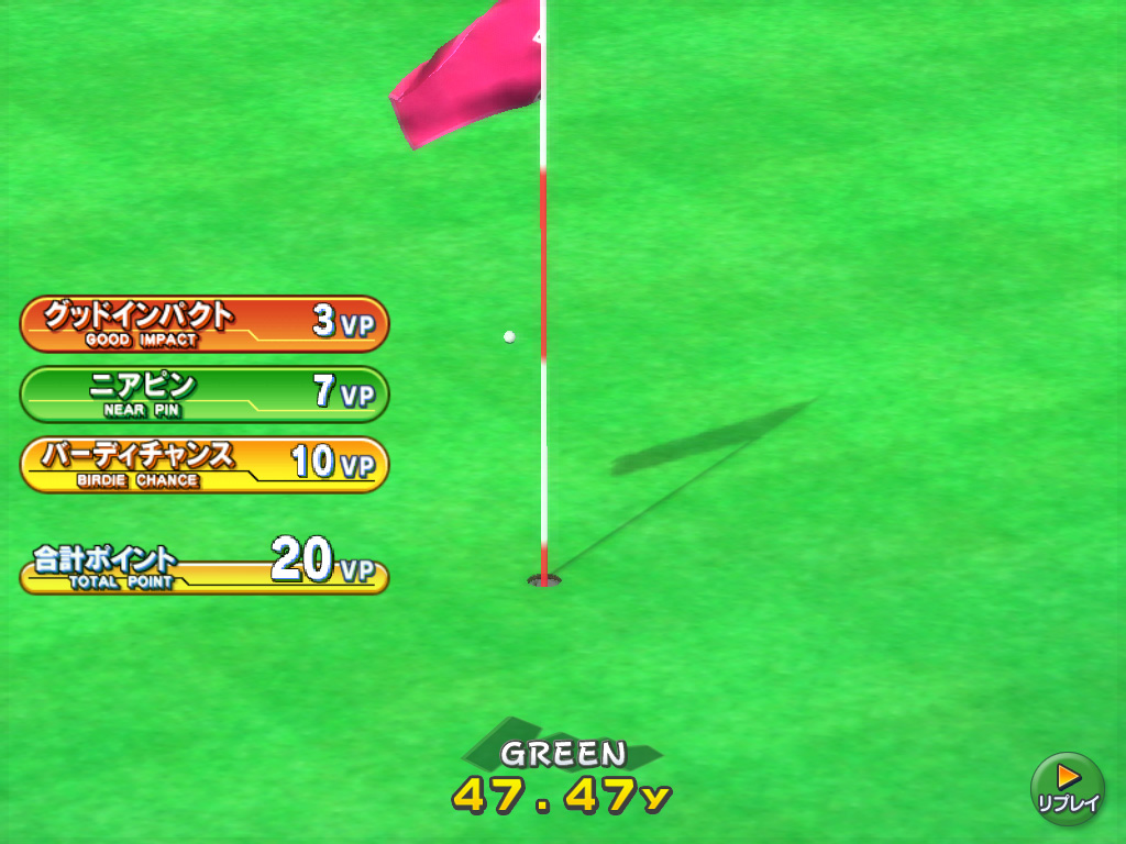 しかしゴルトモ最大の魅力は,そういった操作のシンプルさではなく,なんといってもオンラインゲームでありながら,「リアルタイム対戦ではない」ところだといえるだろう。対戦相手はゴルトモに登録している“誰かさん”のデータからランダムに選ばれる,プレイデータ・マッチング方式を採用している。深夜だろうが平日昼間だろうが,遊び相手が見つからないという悩みとは無縁だ。