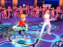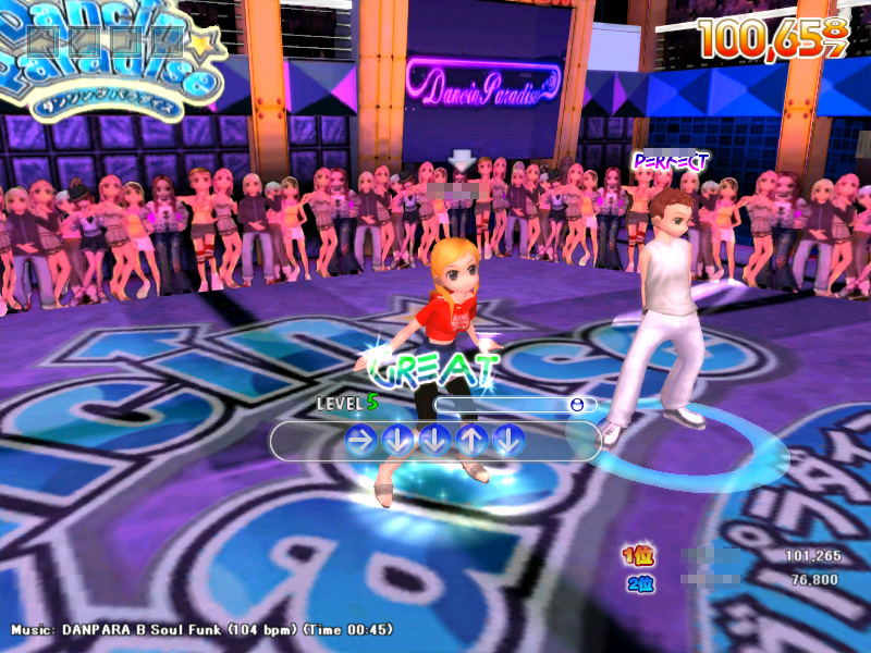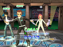 ダンパラは,ダンスとファッションと音楽が一度に楽しめてしまう,ちょっと欲張りなタイトルだ。まずはダンス部分だが,操作に必要なのはカーソルキーとSpaceバーのみ。後述のゲームモードによっては多少異なるが,操作方法の基本は,画面中央に表示される「スキルノート」のとおりにカーソルキーを入力し,その後「タイミング判定バー」のタイミングに合わせてSpaceバーを押すだけだ。
