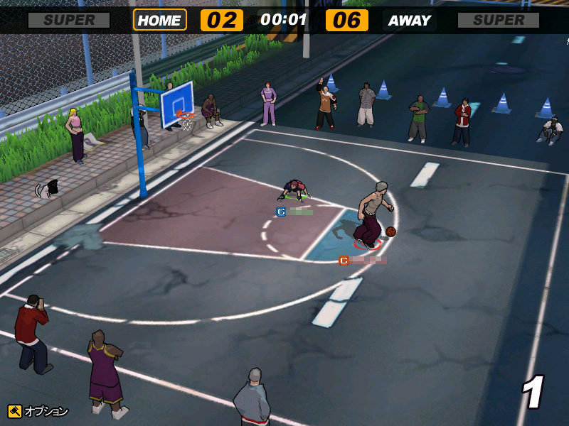 最小限の指の動きでプレイ可能にするため,一つのキーに最低でも二つの動きが割り当てられており,物覚えの悪い筆者にとってこれは実のところかなり苦戦させられた。「ドリブルはA! パスはS! シュートはD!」と三つ覚えただけで精一杯……。相手からボールをスティールするつもりが,コートの真ん中でブロックの動作で飛び跳ねていたりと,操作を完全に覚えるまではだいぶ恥ずかしい思いをしてしまった。