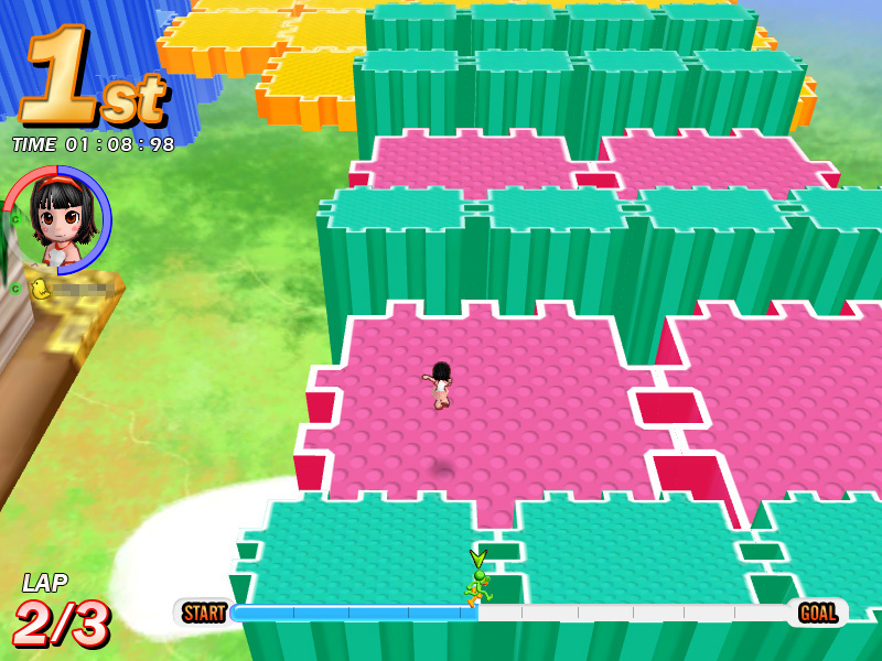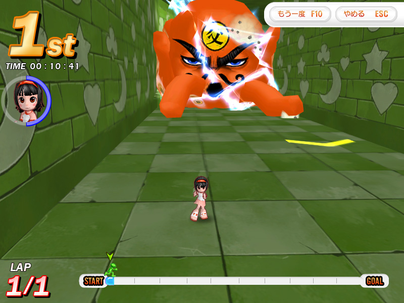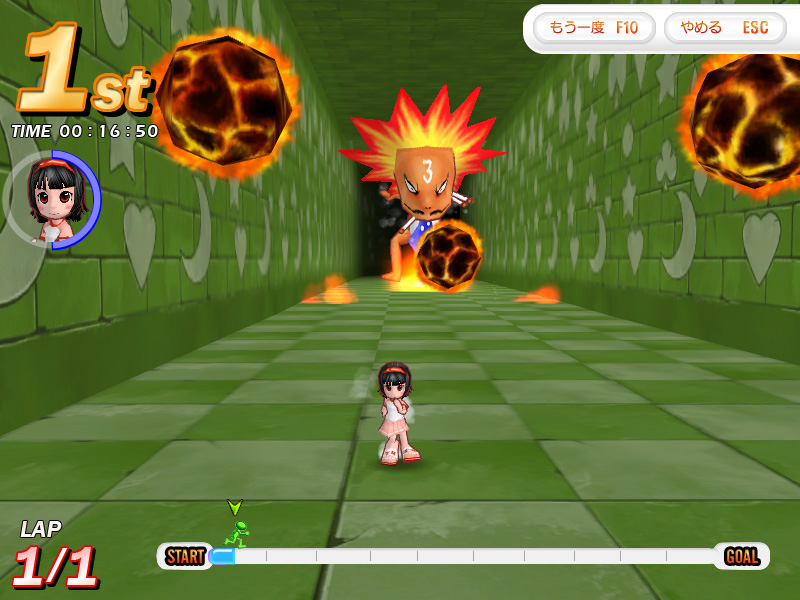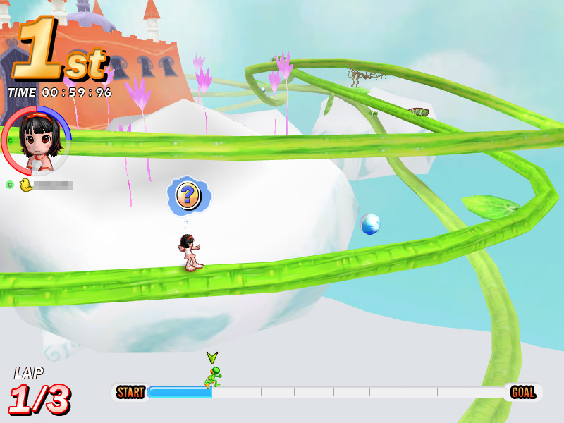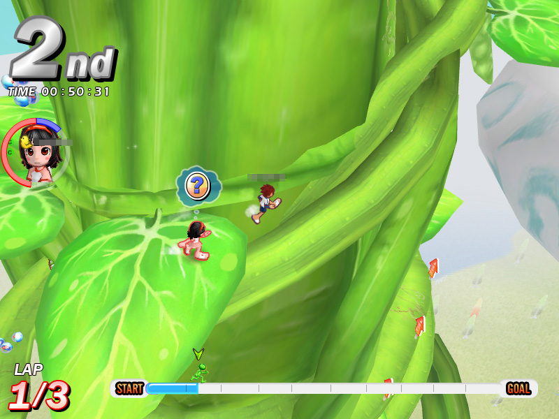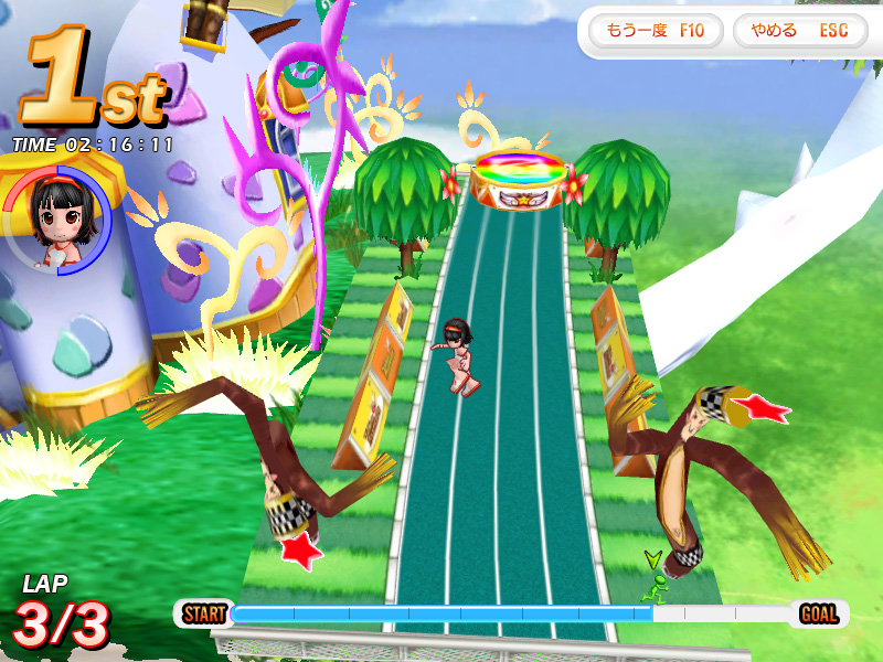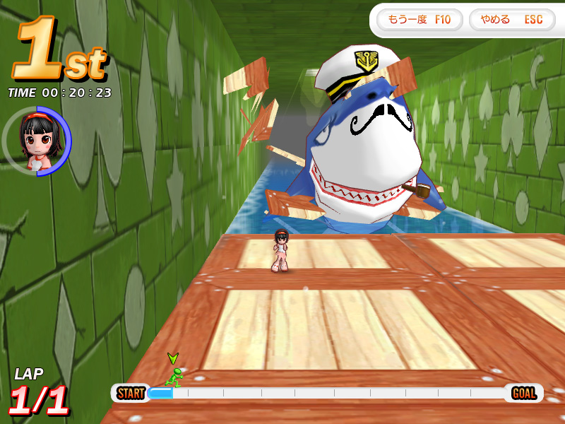 主に30人競争用のコースで,基本的に前進していくほかのマップとは異なり,画面手前へ向かって走るのが特徴だ。後ろから巨大なタコが迫り来る「タコ親父の怒り」,火の玉を吐くトカゲから逃げる「トカゲオジサンの怒り」などがある。このコースでは,もし途中でレースから脱落してしまっても,Tabキーを押すことでほかのプレイヤーの様子をチェックできる。