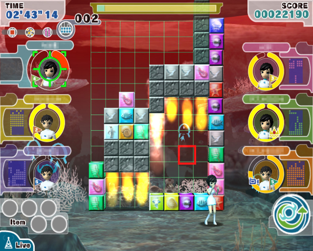 と,ここまではDS版と同じだが,本作ではオンライン化による最大6人対戦が可能になったほか,DS版にはない「ブロックの横移動」など,多少ルールに変更が加えられている。DS版で遊び尽くした人も,あらためてプレイする価値があるだろう。