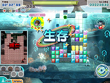 要は,ランダムに降ってくるブロック(メテオ)を,同じ色とマークで縦横いずれかに三つ以上並べて打ち上げ,さらに打ち上げたブロックの塊が「大気圏ライン」と呼ばれるラインを越せば消滅する。制限時間内に惑星のHPがゼロになれば「滅亡」,星を守りきれば「生存」だ。