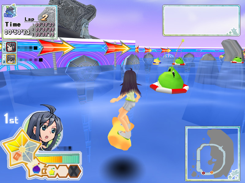 走行中にゲージが溜まると各キャラ固有の必殺技が出せるといった特徴も含めて,レースゲームとしてのゲームシステムとインタフェースは,かなりオーソドックス。そんなとぅいんくるが,なぜ正式サービス前から注目を集めているかといえば,キャラクターの際立った個性や,そのバックグラウンドに秘密が隠されている。