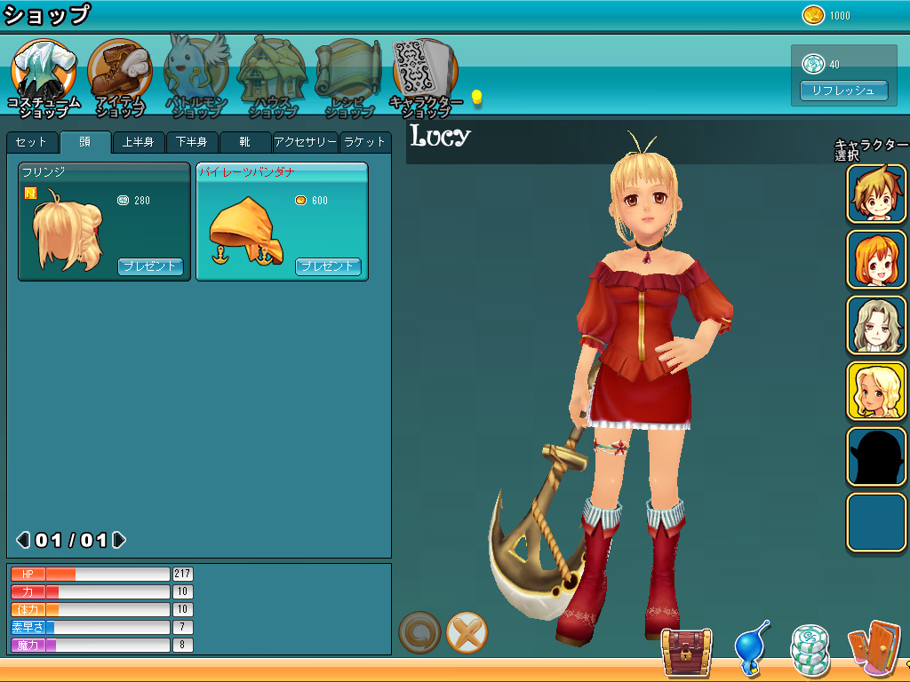 なおアイテムには,有料の「ファンタポイント」で購入するものと,ゲームプレイを通じて入手できる「ゴールド」で購入するものとがある。今のところほとんどの衣装と各キャラクターは,ゴールドで購入可能だ。
