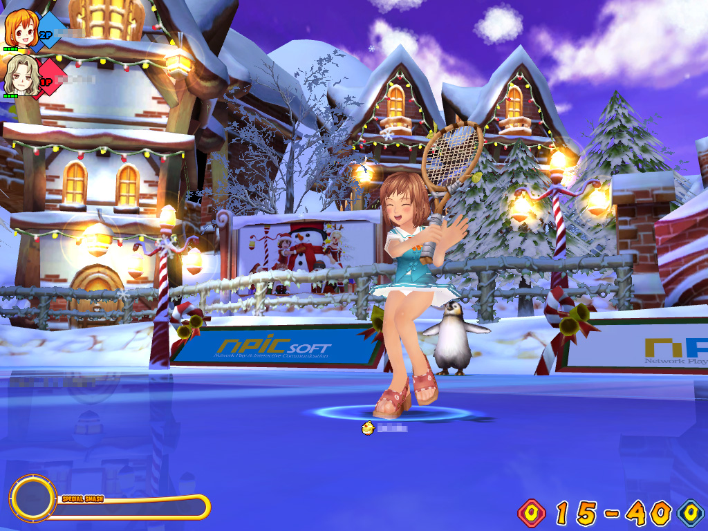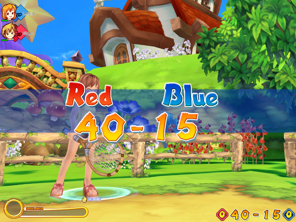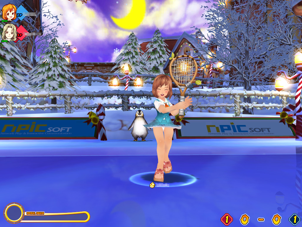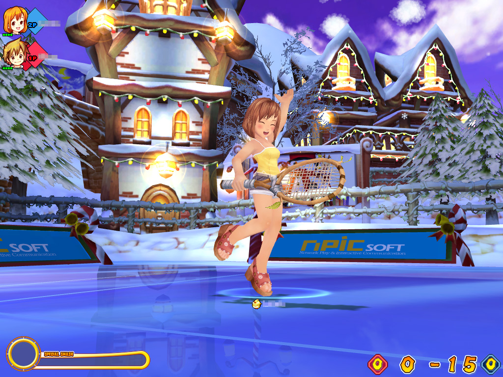 要は,ドジっ子魔法少女と平凡な人間の少年が,もとの世界へ戻るためにテニスに挑む,愛と友情とチラリズムがテーマのテニスゲームだ。何せ日本版の変更点が,以前お伝えしたとおり「女の子のスカートを短くして,ときどき白いものが見えるようになっていたり,胸を大きくして揺れるようになった」なのだから。