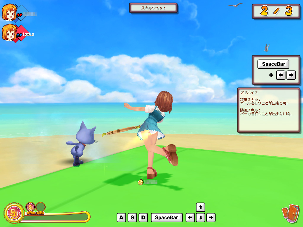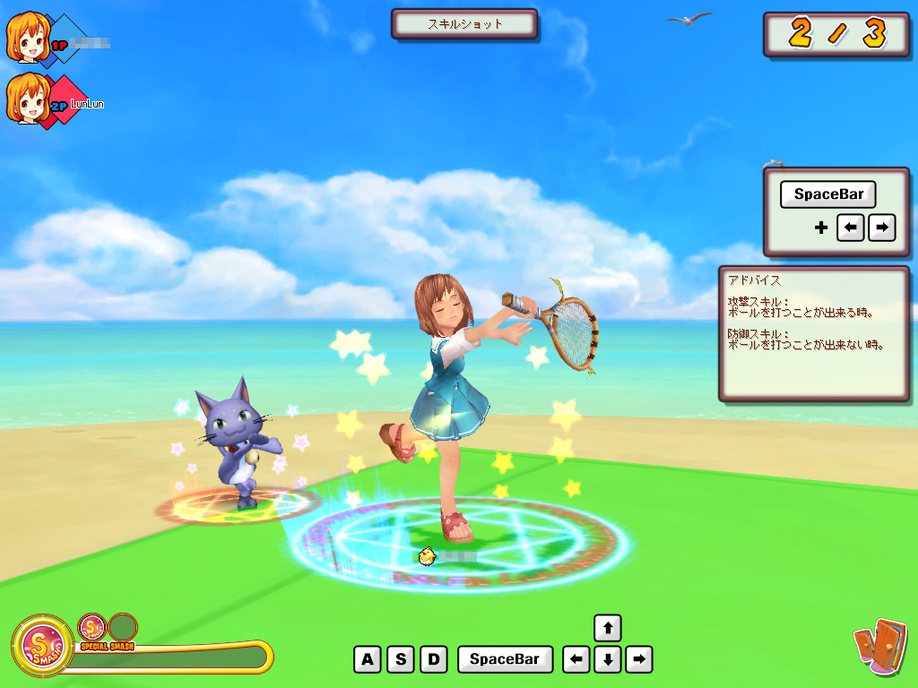 攻撃/防御スキルという特殊な「スキルショット」が打てる以外は,普通のテニスと同じルールで進行するモード。前後左右に敵をゆさぶり,いかに自分のぺースに持ち込めるかが勝敗を分ける。