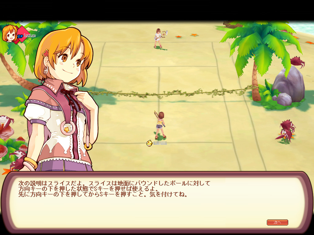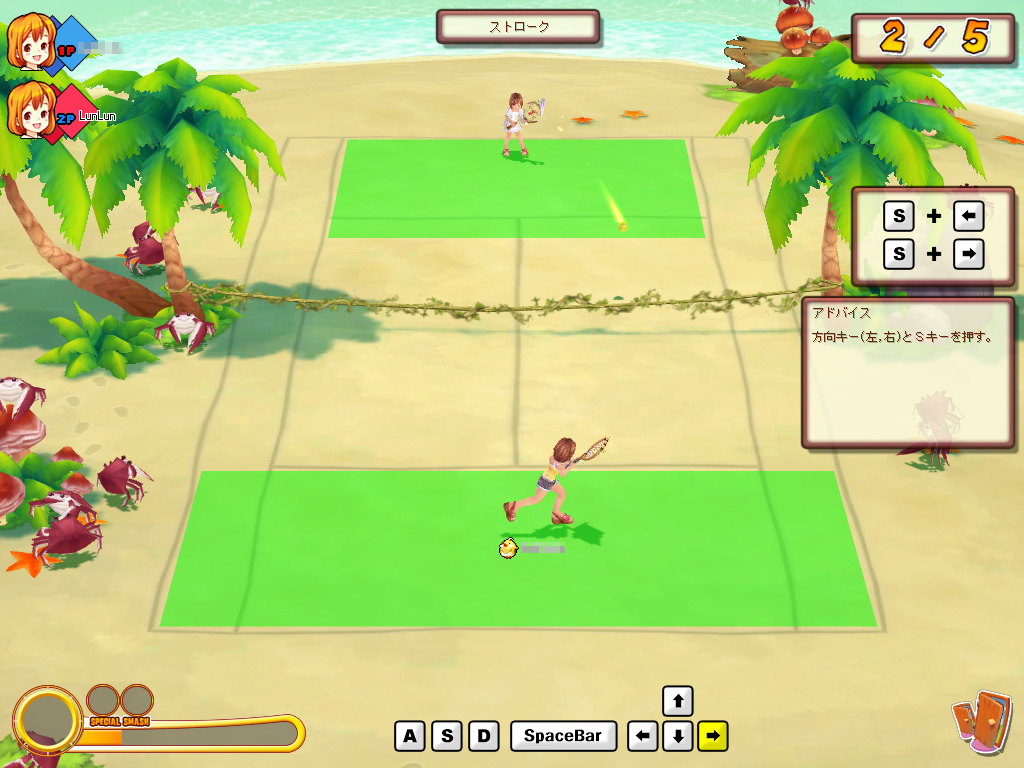 ファンタテニスには,基本操作だけで「サーブ」「ロブ」「ストローク」「スマッシュ」「ボレー」「スライス」の6種類もある。いくら操作に必要なキーが少ないとはいえ,組み合わせを暗記したうえでさらに返球の強弱と角度を巧みに操るのは,ちょっと難しい。一通りの操作を教えてくれるチュートリアルは何度でも受けられるので,操作に自信のない(筆者のような)プレイヤーは,よくよく復習しておこう。