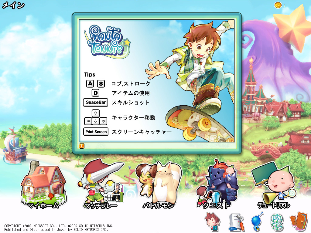 さて今回紹介するのは,2006年12月21日に正式サービスを開始したオンラインテニスゲーム「ファンタテニス」である。魔法が存在する世界「ファンタランド」で行われるテニス大会では,優勝者には「何でも願いをかなえてくれる」という,実にベタだが魅力的な賞品が用意されている。腹に一物あるキャラクター達が,己のエゴと欲望を満たすために(若干語弊あり),大会優勝を目指してラケットを手に取るのである。