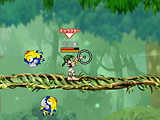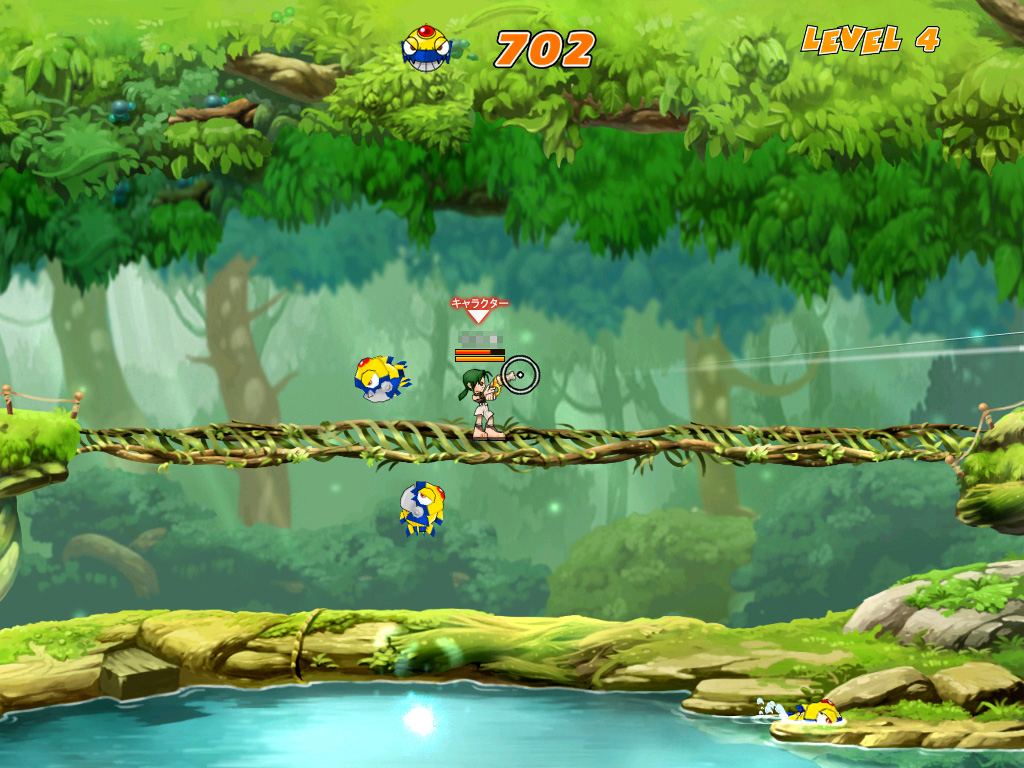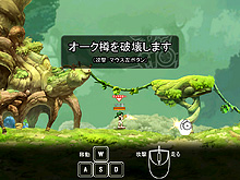 | 画面左端から,ただ歩いて右端へ移動するだけの超簡単ビギナーミッション「森の中の散歩」。それなのに途中のアリジゴクに突っ込み,一度倒されたなんて,さすがに恥ずかしすぎて言えない |