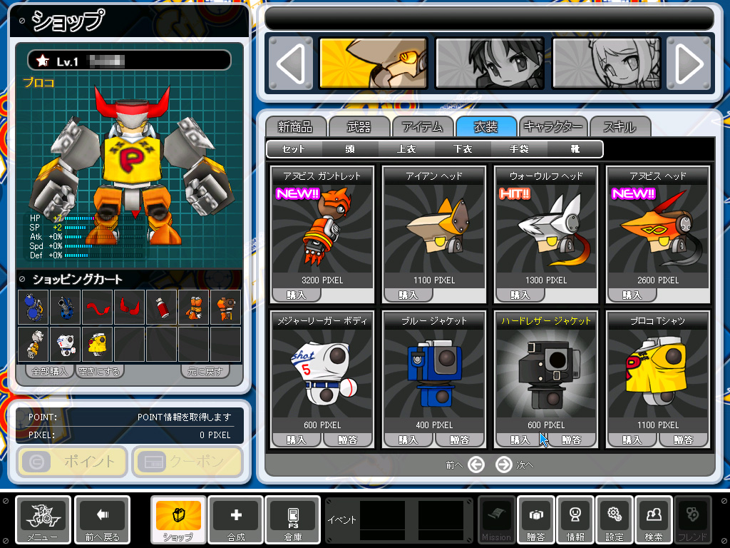 マイルームは「倉庫」という味気ない名前だが,ショップで購入した衣装と武器が保管され,使用キャラクターの変更も行える。